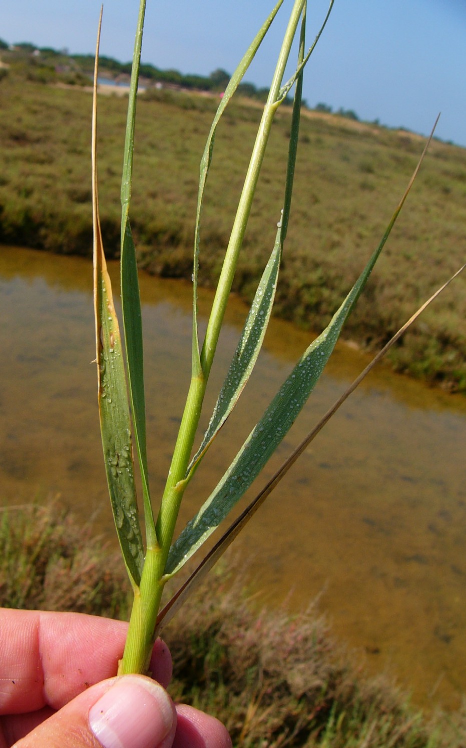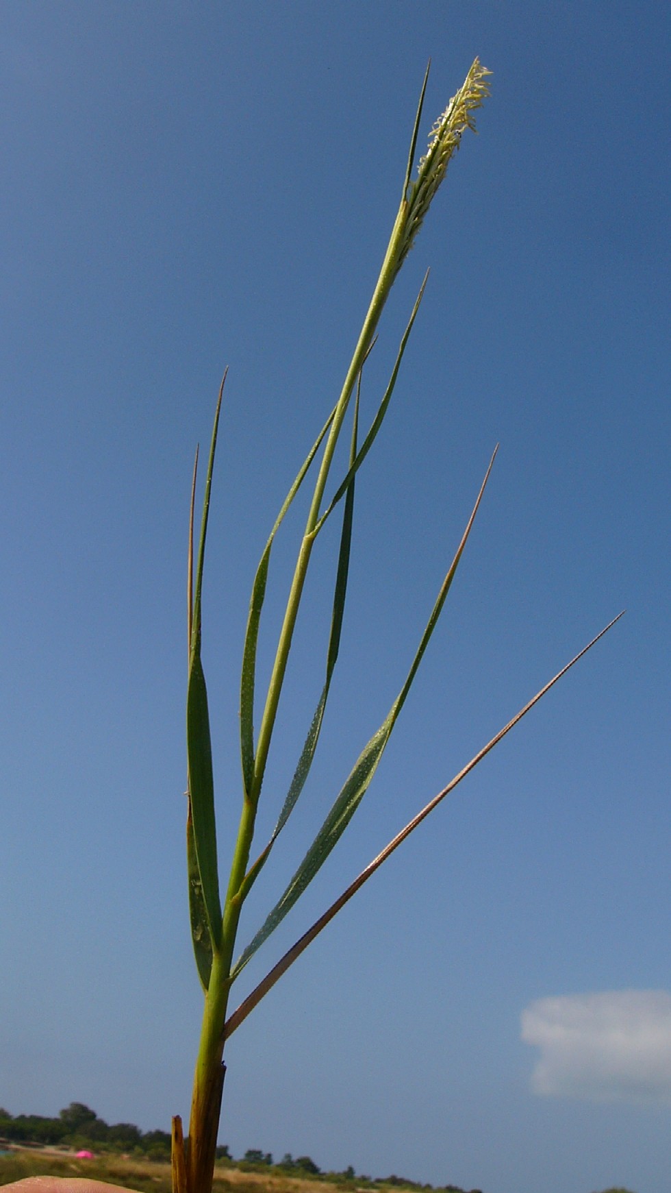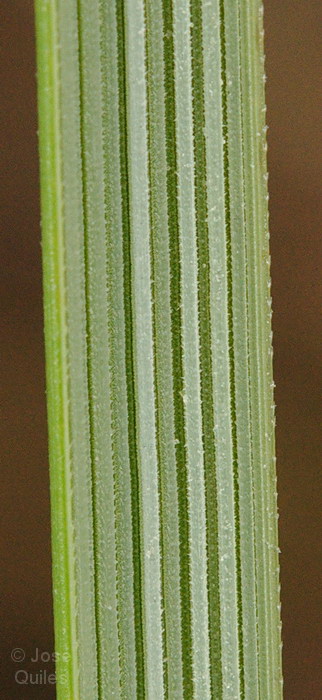 3 Blätter flach, 4 - 15 mm breit, Rhachis der Ährchen ragt bis zu 27 mm über die Ährchen hinaus