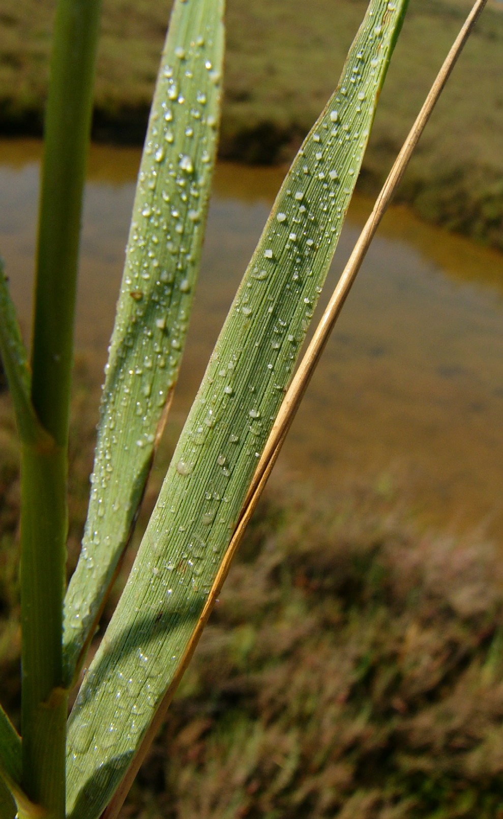 2 Junge Blätter im unteren Teil ausgebreitet 3 - 8 mm breit, ältere Blätter +/- binsenförmig eingerollt, Rhachis der Ährchen ragt nicht über die Ährchen hinaus