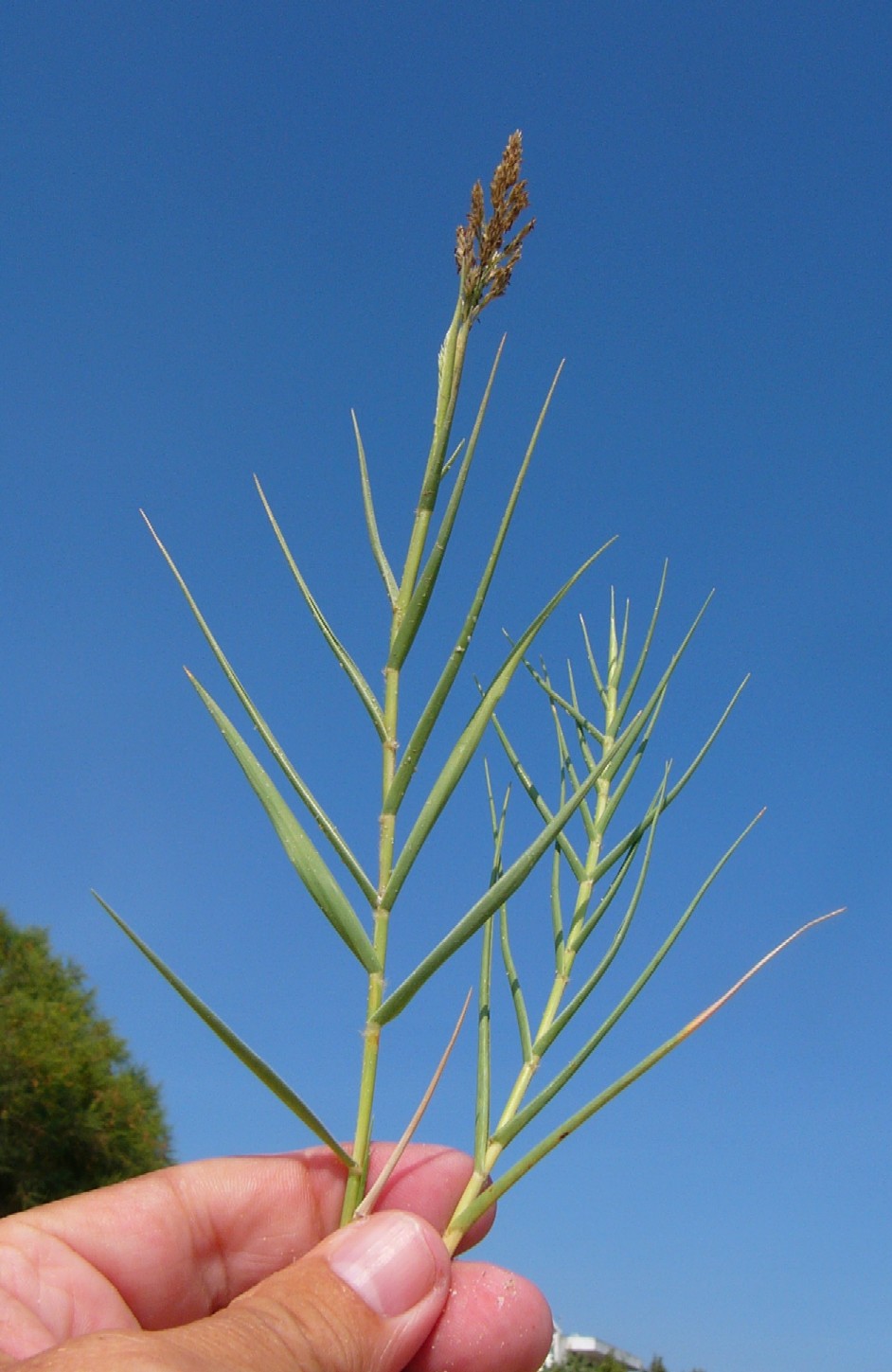 5 Meist nur der untere Teil der Rispe von einem bauchigen Hüllblatt eingeschlossen, Ährchen lanzettlich 3 - 6 mm lang