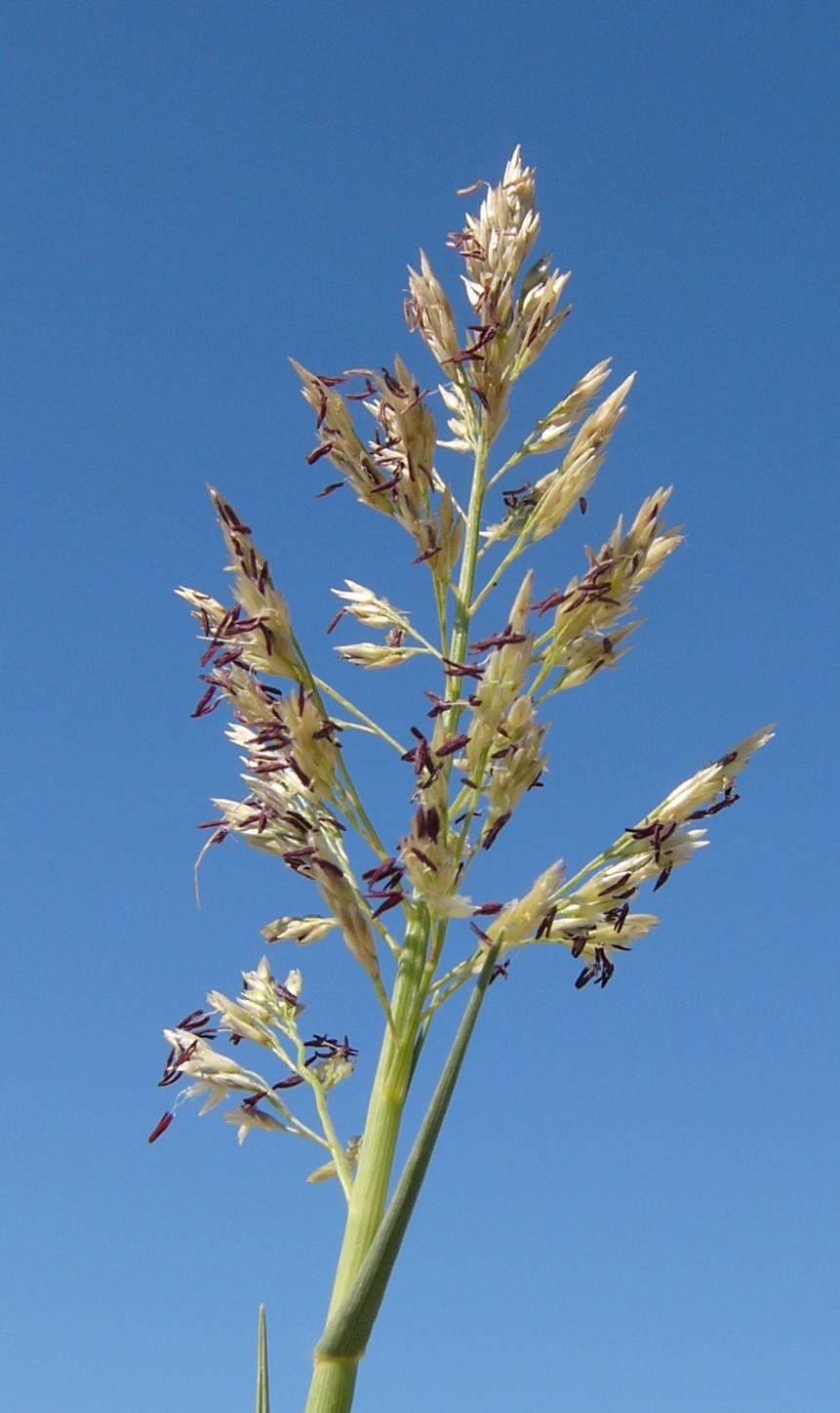 Rispen 3 - 5 cm lang, mit wenigen Ährchen, die gesamte Rispe oft vollständig von einem +/- bauchig aufgeblasenem Hüllblatt umgeben