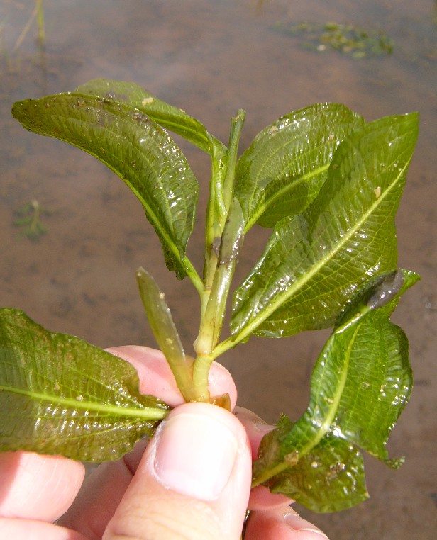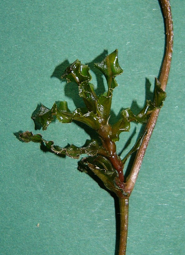 Tauchblätter sitzend oder halbstängelumfassend, oft undeutlich quernervig, vorne +/- stumpf, am Rand deutlich sichtbar gezähnt oder ungezähnt > Tauchblätter sitzend oder halbstängelumfassend