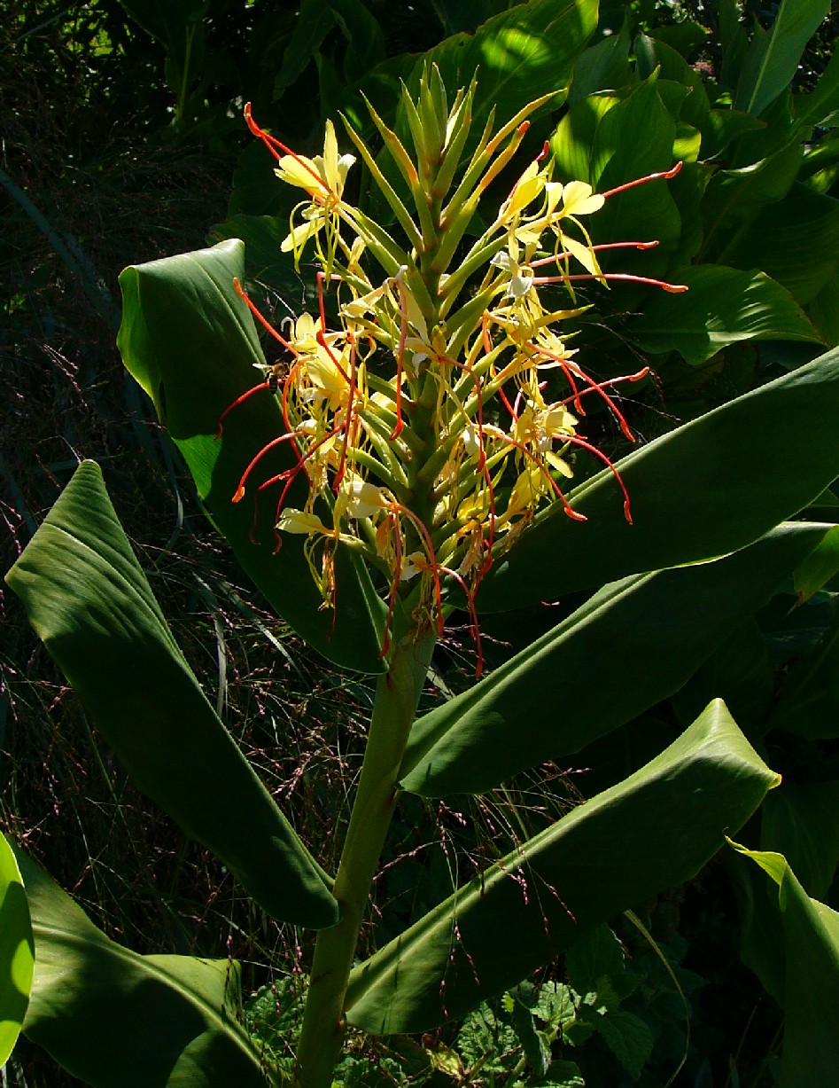 in: Etymologie: Im natürlichen Lebensraum kommt Hedychium gardnerianum an Bachläufen oder Mischwaldrändern in Höhen von 1900 bis 2000 m vor.
