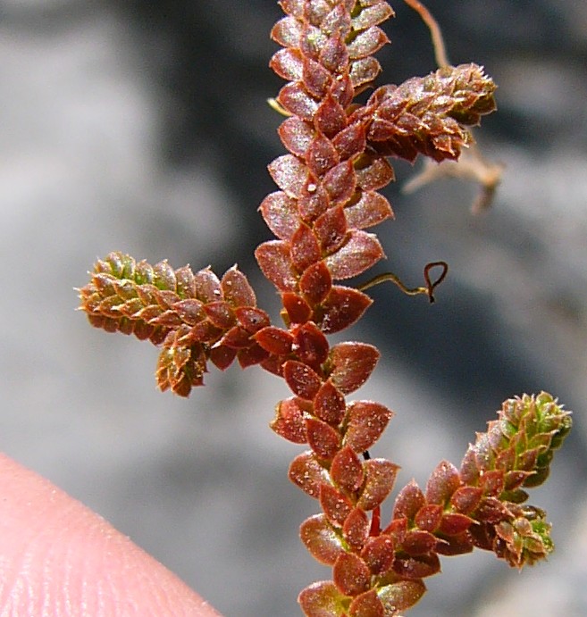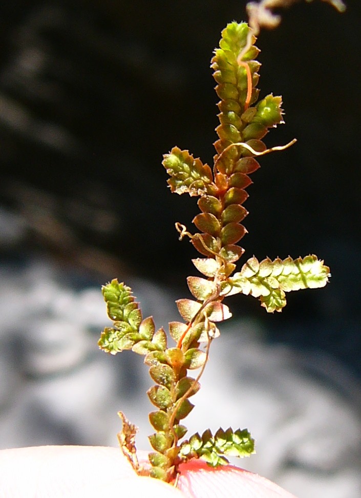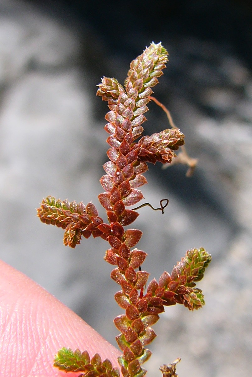 Sporangien mit vielen Megasporen Laubblätter eiförmig, 2,5 mm groß, flach, stachelspitzig, oberseits in der Sonne oft rot
