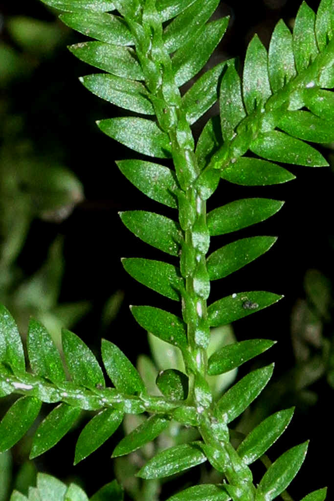 Blättchen gegenständig, 4-reihig, verschieden groß, in einer Ebene angeordnet, ganzrandig, Verzweigungen nicht gelenkartig, unterseits meist grün