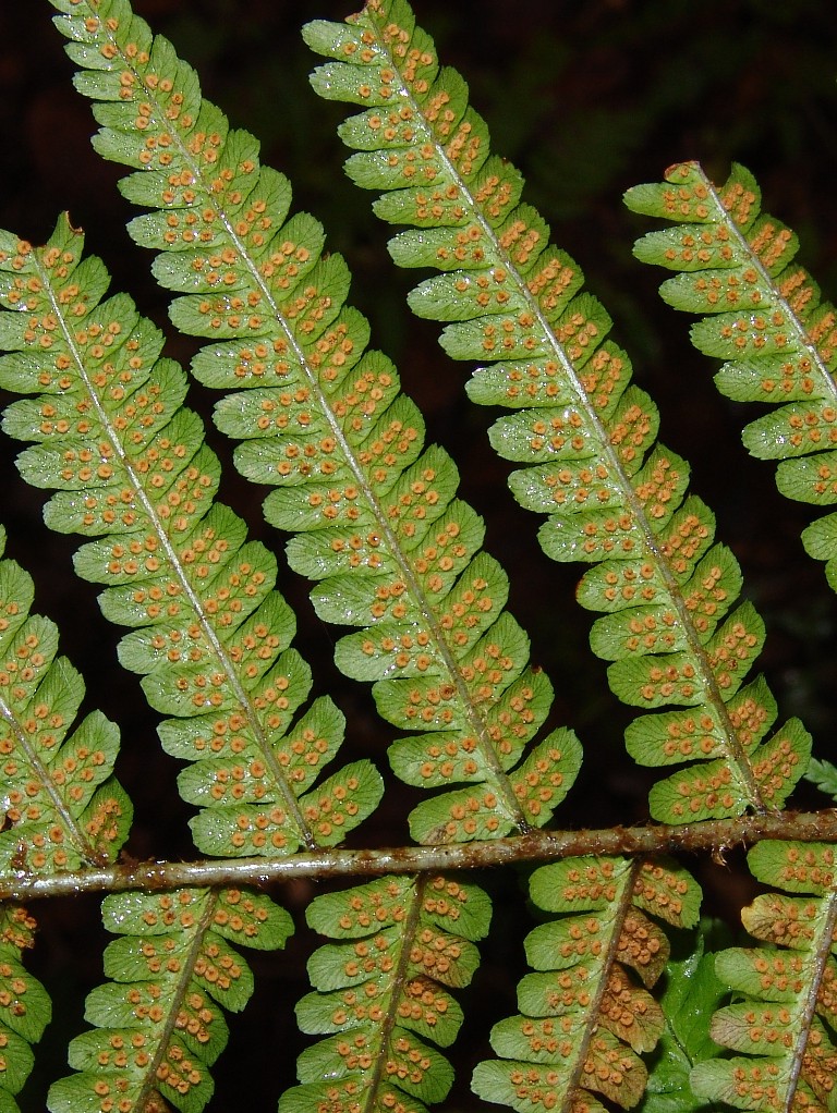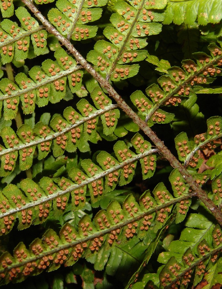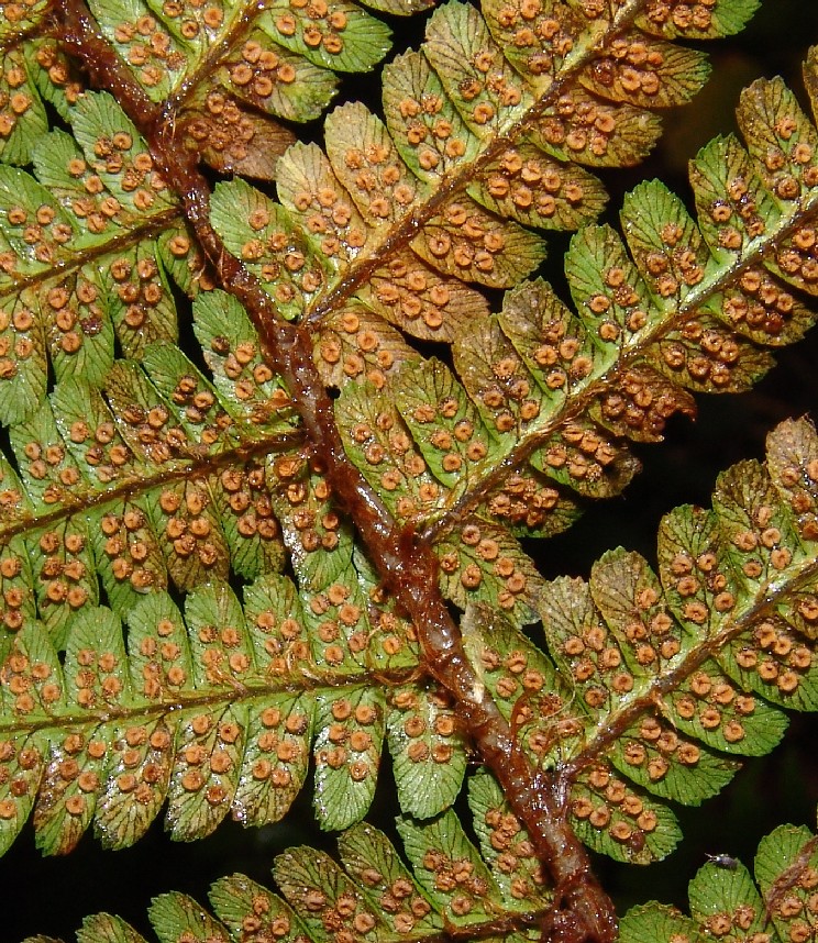 Spreuschuppen braun, besonders an der Blattspindel mit schwarzbraunem