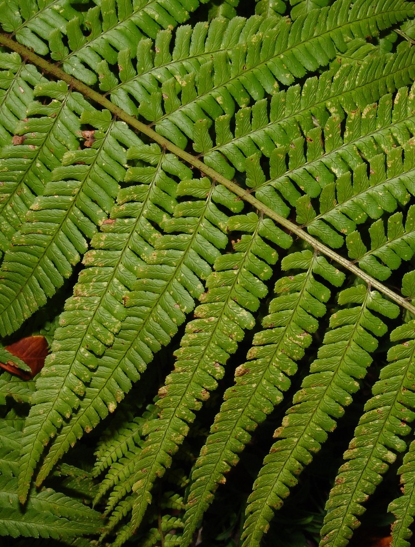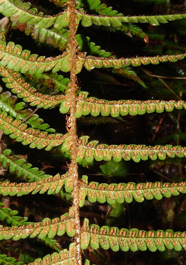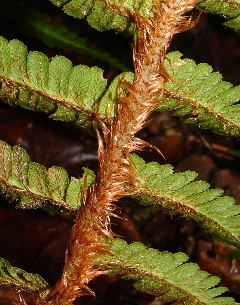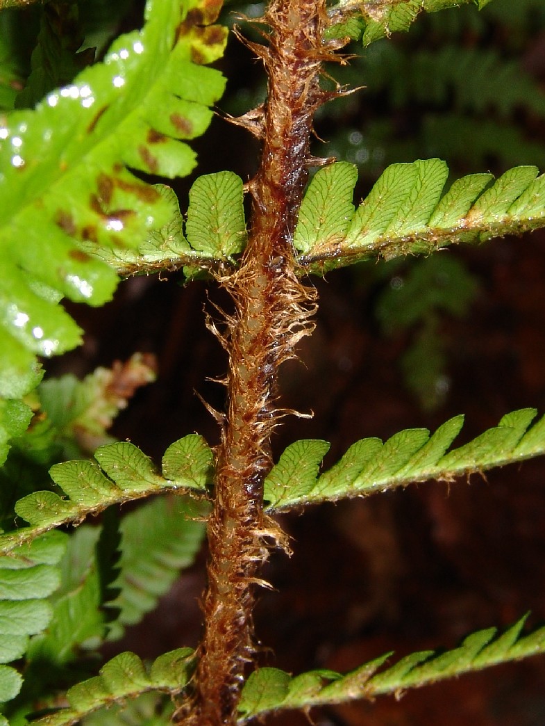 Stiel der Blattwedel stark mit kupferroten Spreuschuppen besetzt