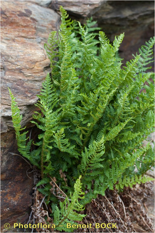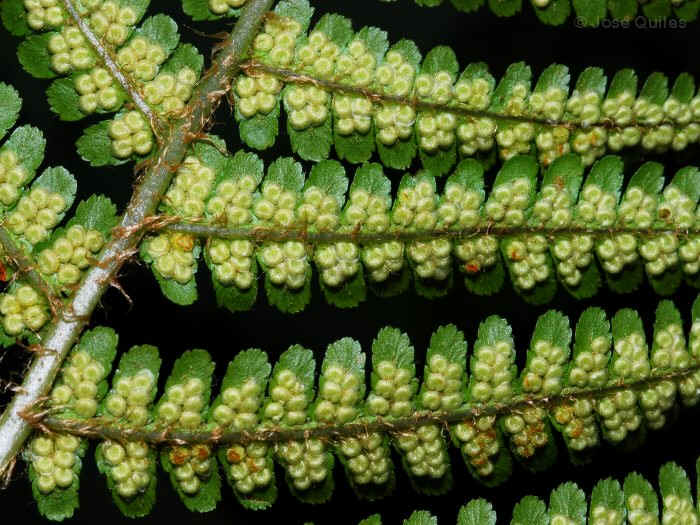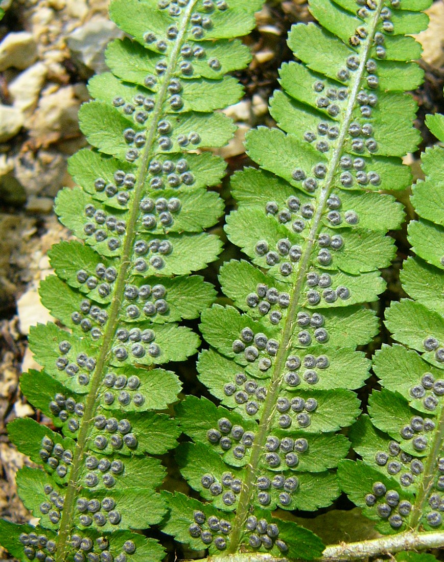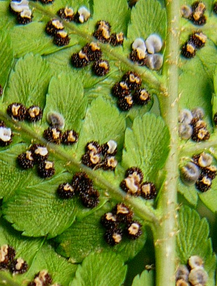 Fiedermittelrippe meist schwach spreuschuppig, auf jedem Fiederchen 3 - 10