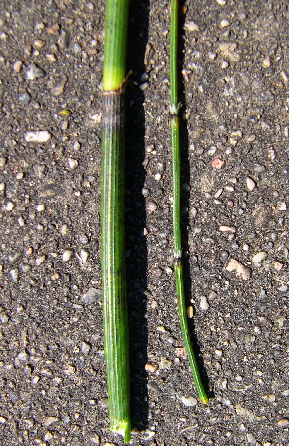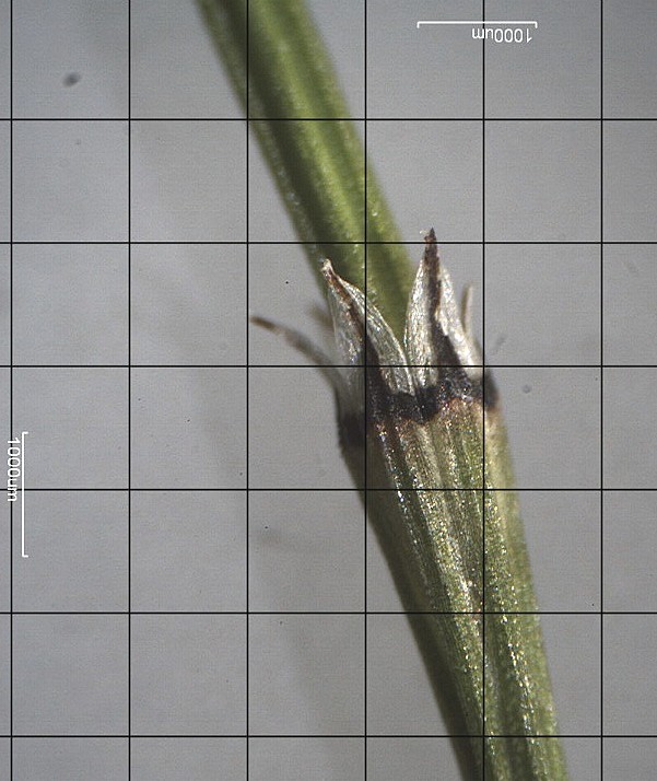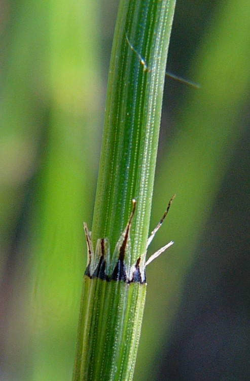 Stängel 2 - 3 mm im Durchmesser, Blattscheide ohne ausgeprägten Knorpelwulst am oberen Ende, auch im unteren Sprossbereich mit schwarzen, meist weiß hautrandigen Zähnen