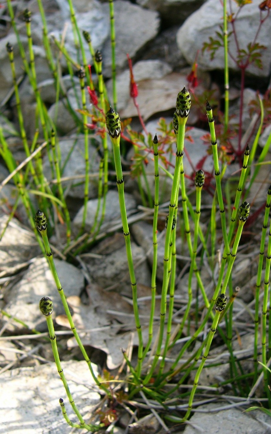 Equisetum - Ähren spitz, Zentralhöhle eng, Stängel 2 - 3 mm im Durchmesser