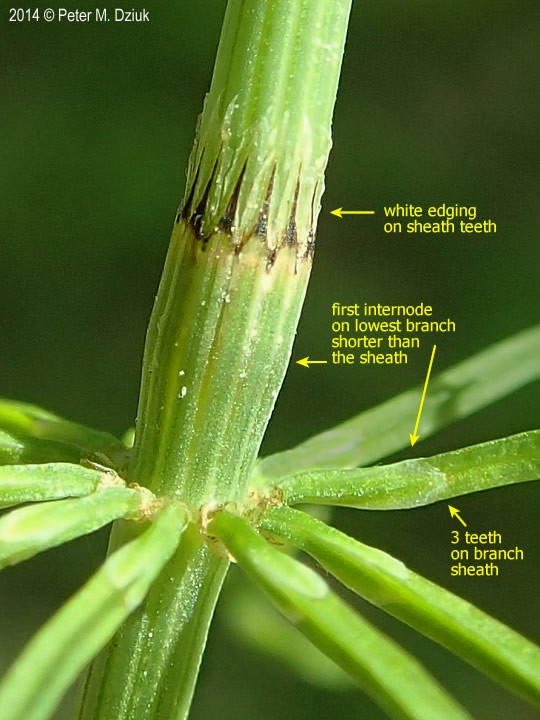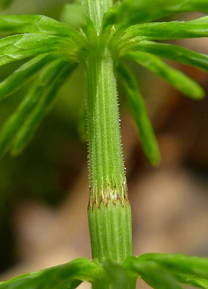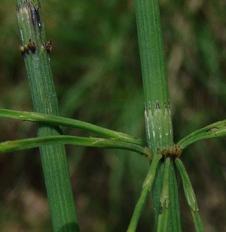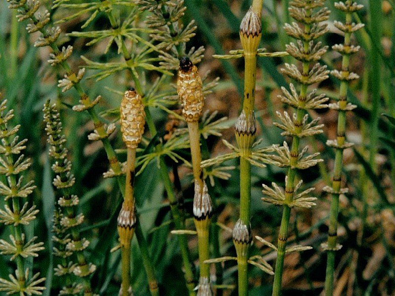 Equisetum - Ähren stumpf, Seitenäste un verzweigt, Stängelscheiden mit 4 - 15 Zähnen, Zentralhöhle weit