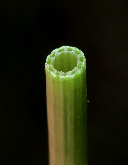 Beim Aufbrechen des Stängels kein weißer "Darm" sichtbar (Jedes Leitbündel hat einen eigenen Endodermisring), Zentralhöhle weit
