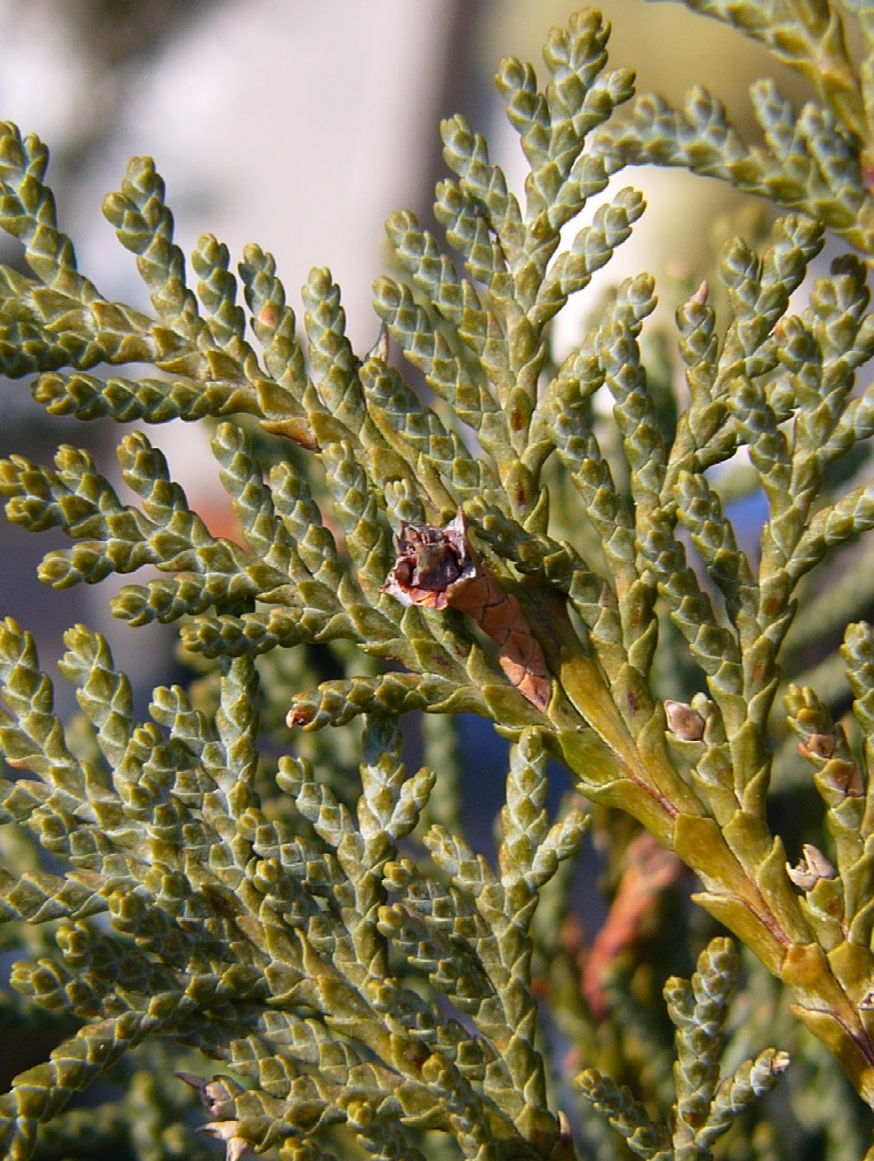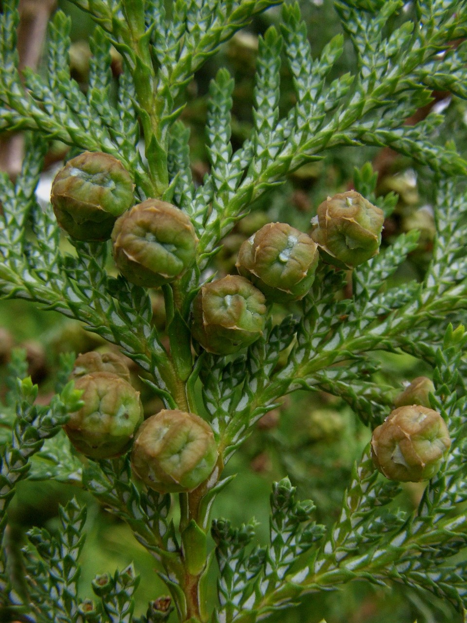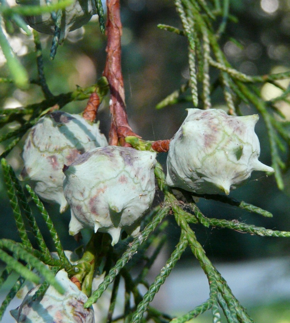 Cupressaceae - Blätter schuppenförmig, Zapfen kugelig, aus 6 - 16 Schuppen, verholzend