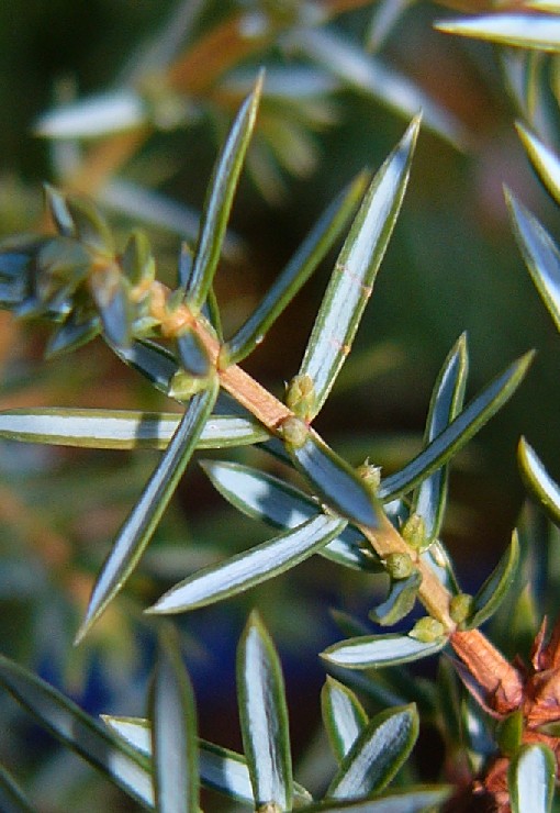 | Blätter zu 3 im Quirl, auf der Oberseite mit hellen Bändern > Wacholder (Juniperus)