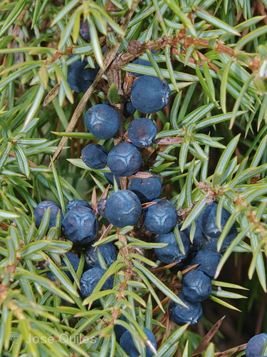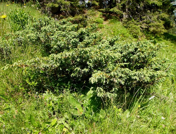 Zapfen beerenartig, aromatisch, von den zugehörigen Nadeln wenig überragt