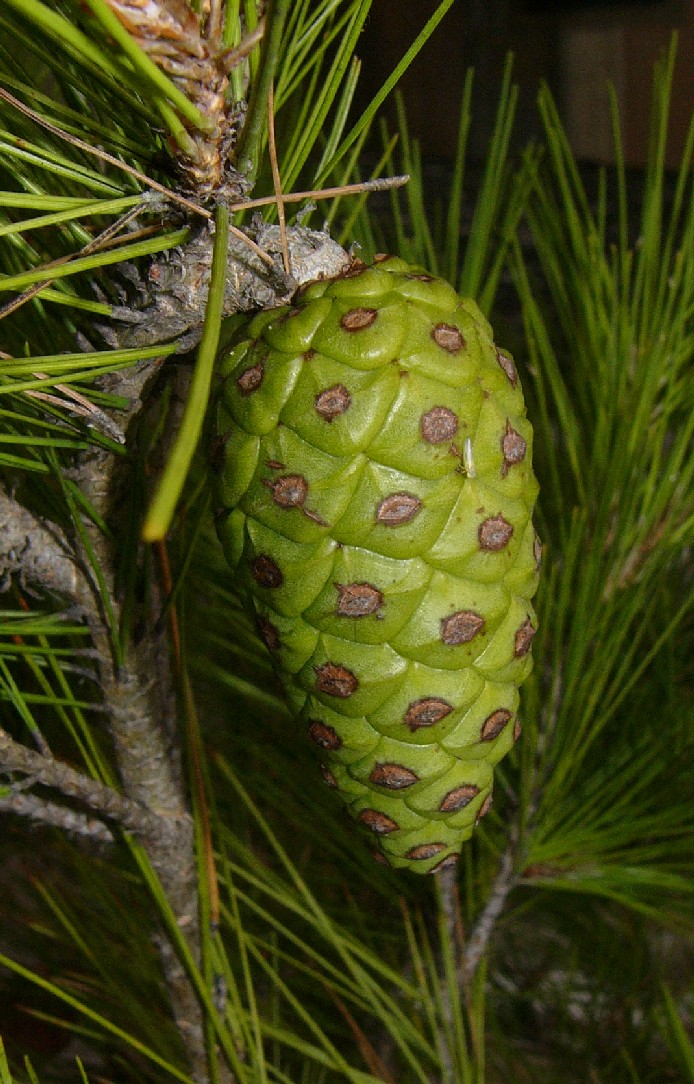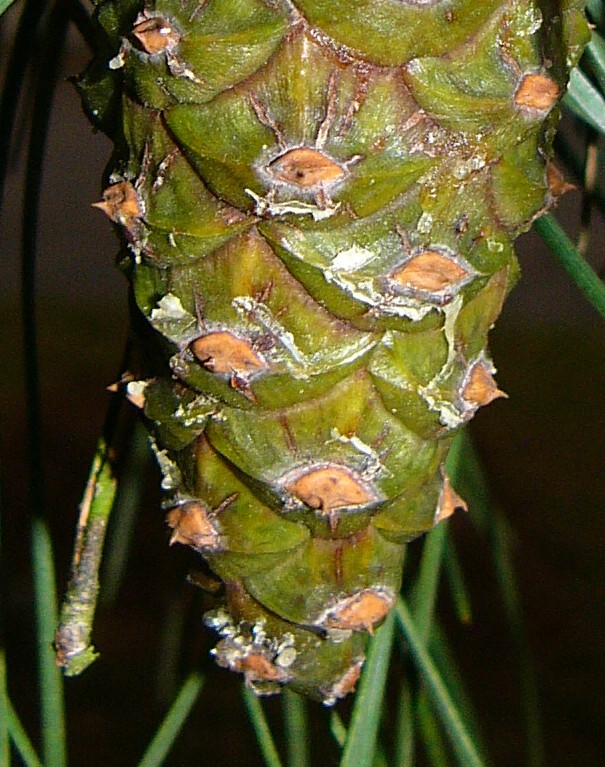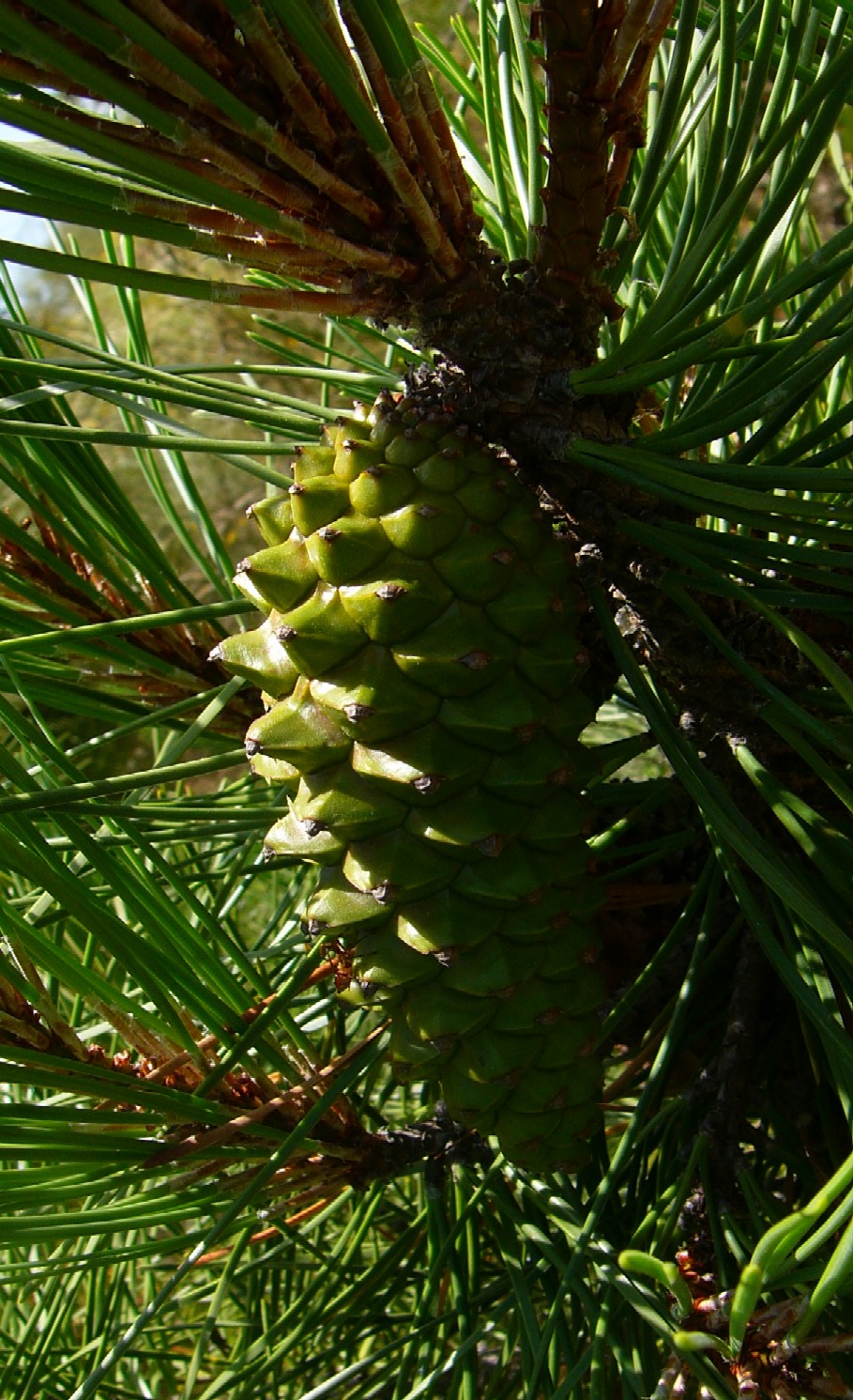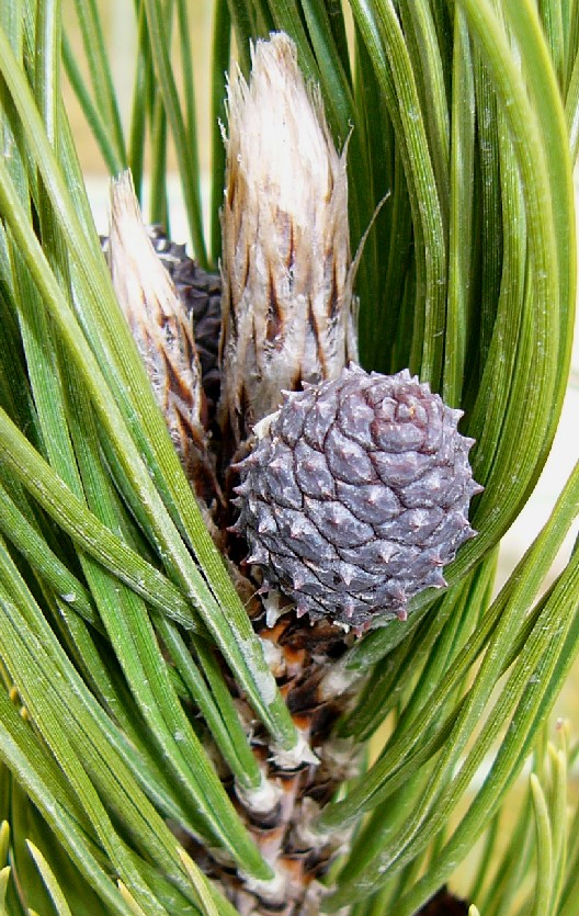 | Meist in Wälder und Bergen Junge Zapfen dornig, Nadeln grün oder dunkelgrün > Junge Zapfen dornig |