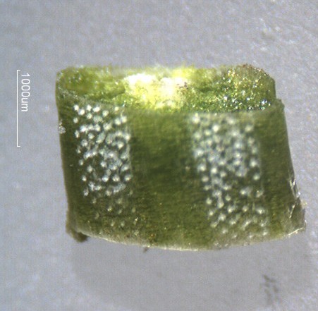Nadeln mit Mittelstreifen, Spaltöffnungen punktförmig, Nadelober- und unterseite gleich