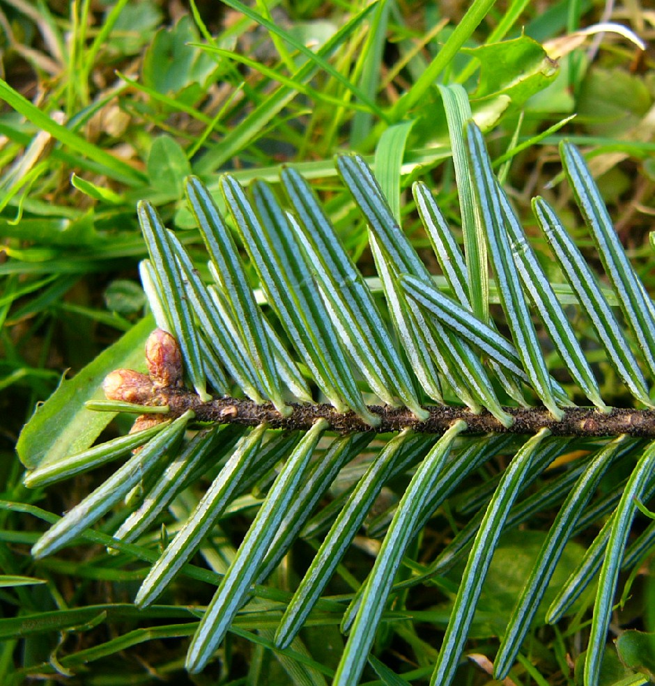 Nadeln unterseits mit 2 weißen Bänden, spitz oder stumpf, nicht stechend, 3,5 - 6 cm lang