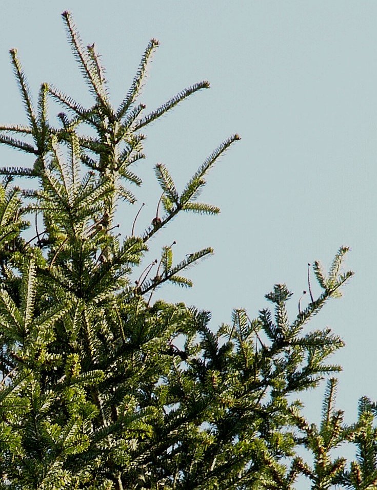 Weibliche Zapfen aufrecht, 3 - 5 cm lang, auf der Oberseite von kräftigen vorjährigen Trieben