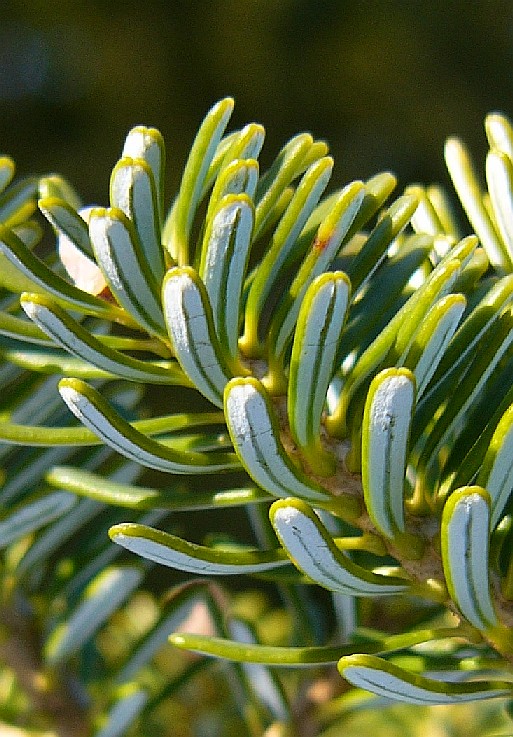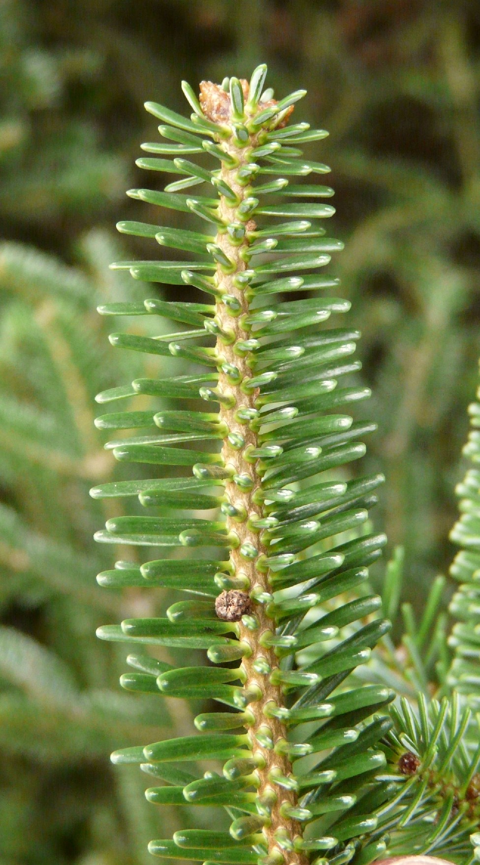Abies - Nadeln 1 - 2 cm lang, oberseits grün, Zweige nicht streng gescheitelt