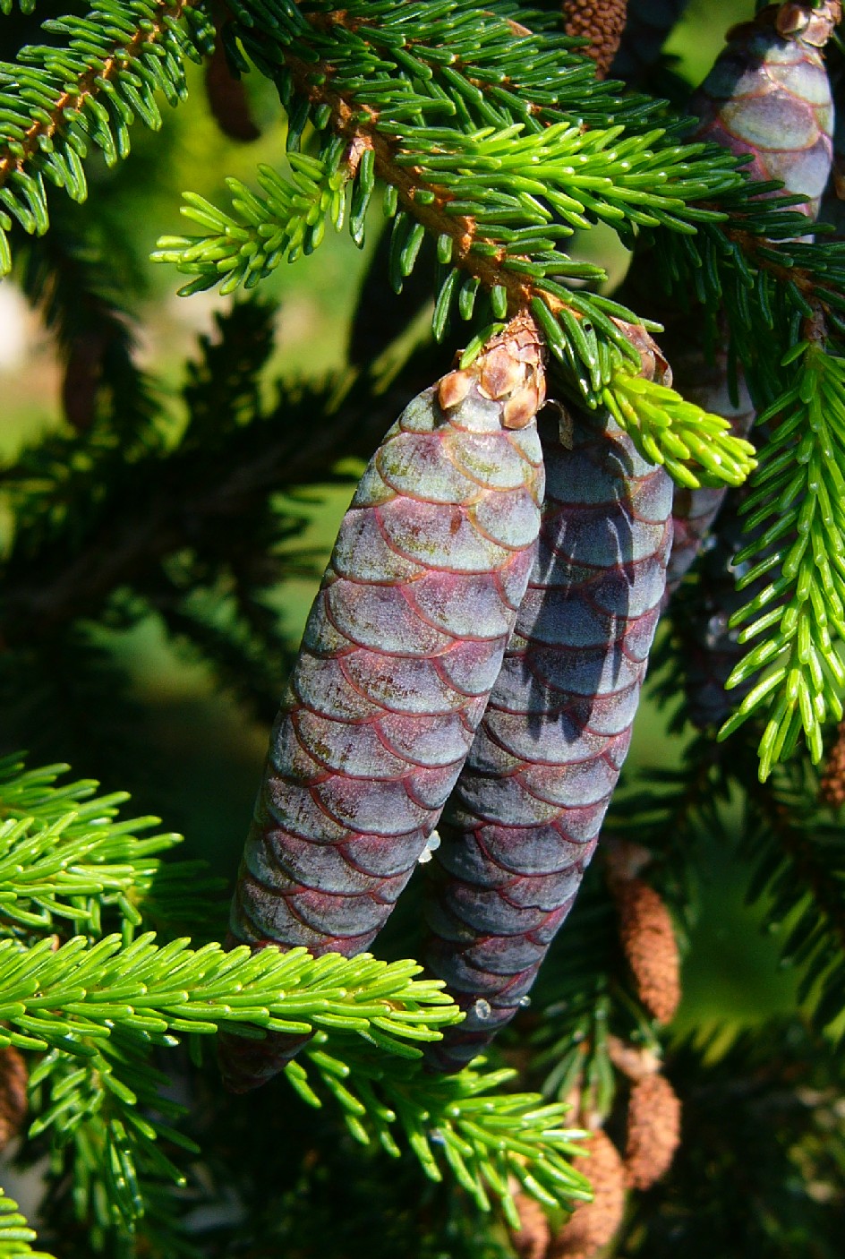 Junge weibliche Zapfen meist violett, im 1. Jahr reifend