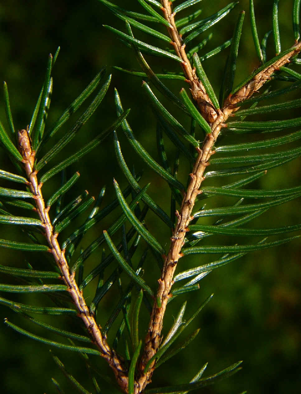Picea - Nadeln +/- vierkantig, Spaltöffnungsreihen +/- auf allen 4 Seiten