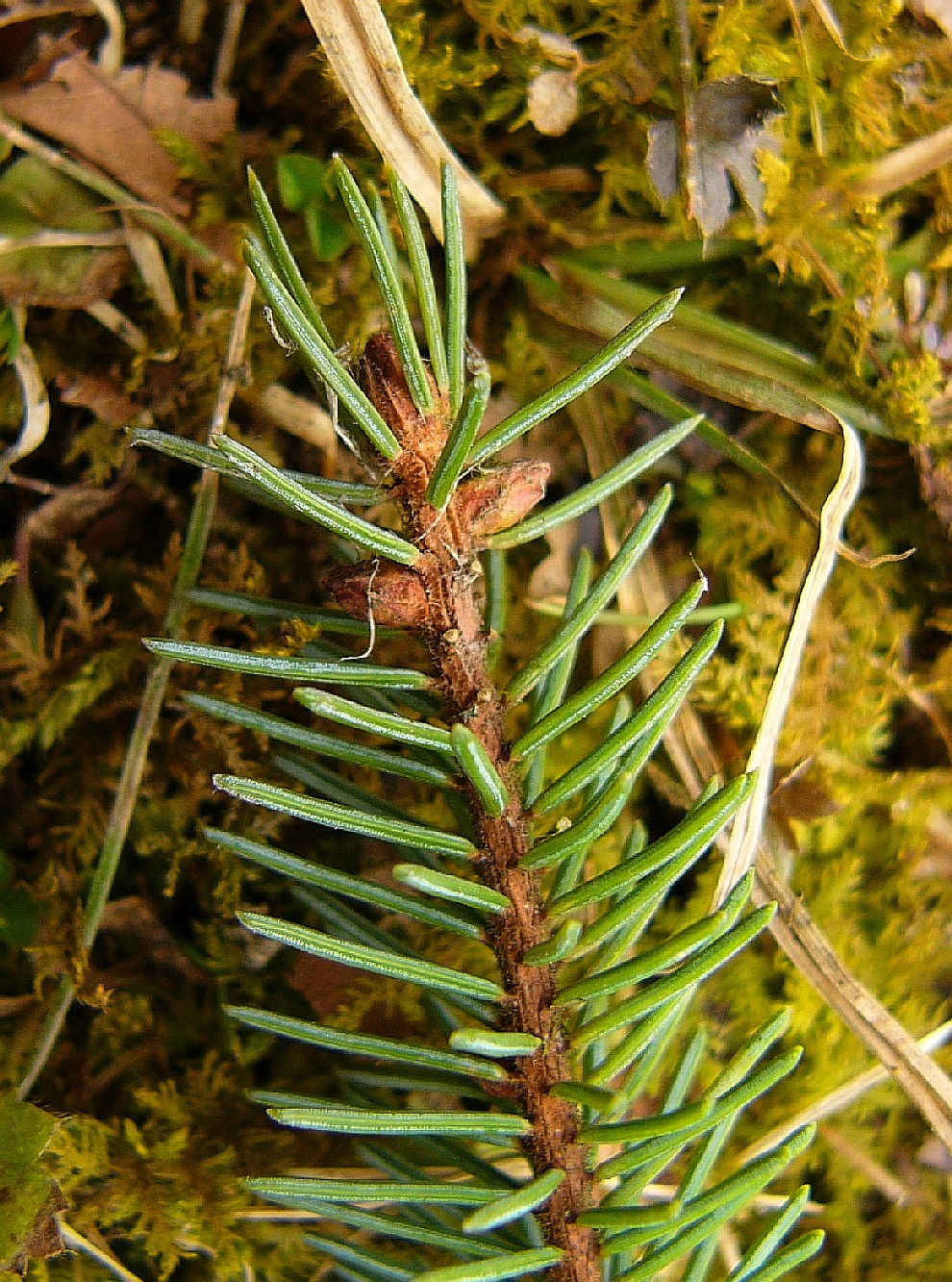 Picea - Nadeln vierkantig, mit Spaltöffnungsreihen +/- auf allen 4 Seiten, junge Zweige behaart