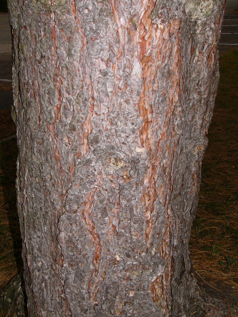 Stamm schwarzgrau bis graubraun, tief rissig, darunter rötlich
