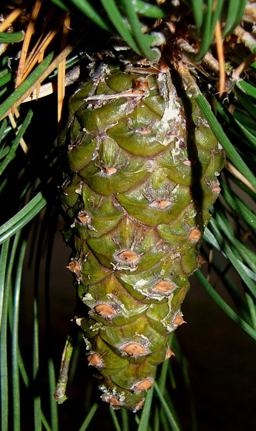 Nadeln 8 - 15 cm lang, Knospen harzig Junge Zapfen grünlich > 2