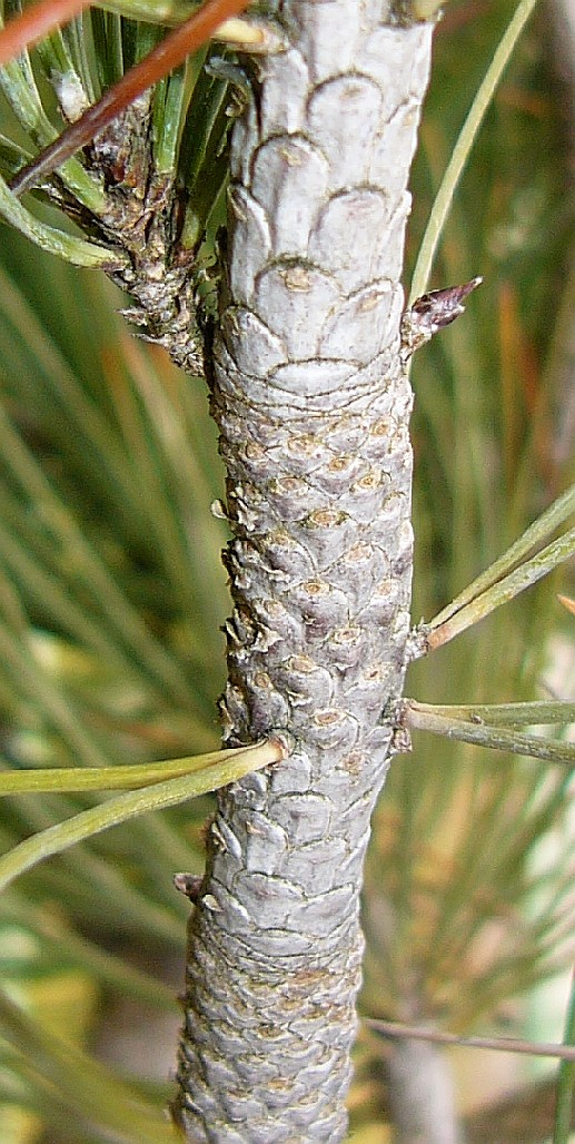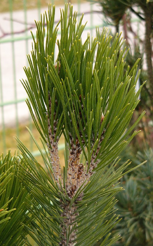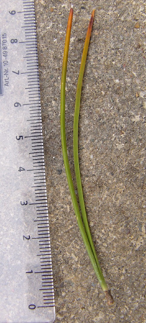 Nadeln zu 2, 6 - 10 cm lang, steif, stechend, zum Zweig hin gekrümmt