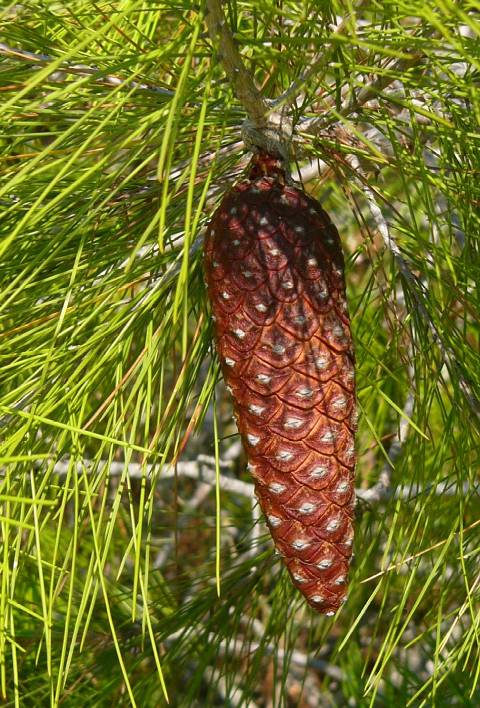 erstjährige Zweige grau Zapfen hängend, meist einzeln > 1