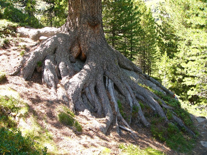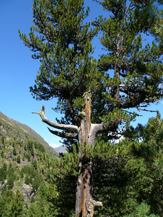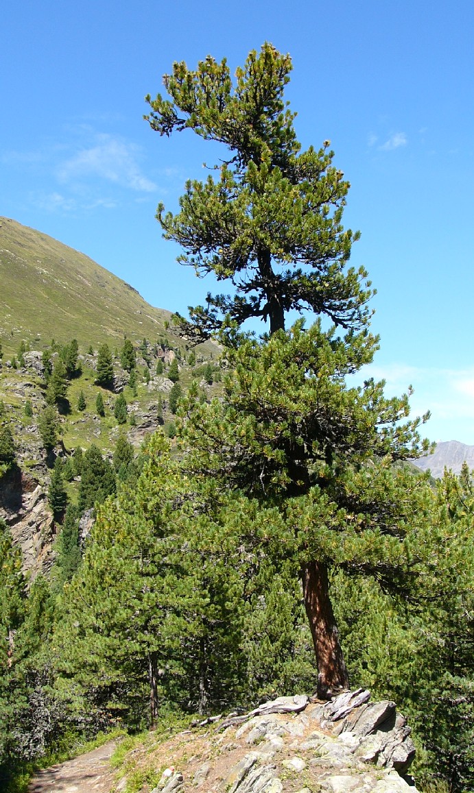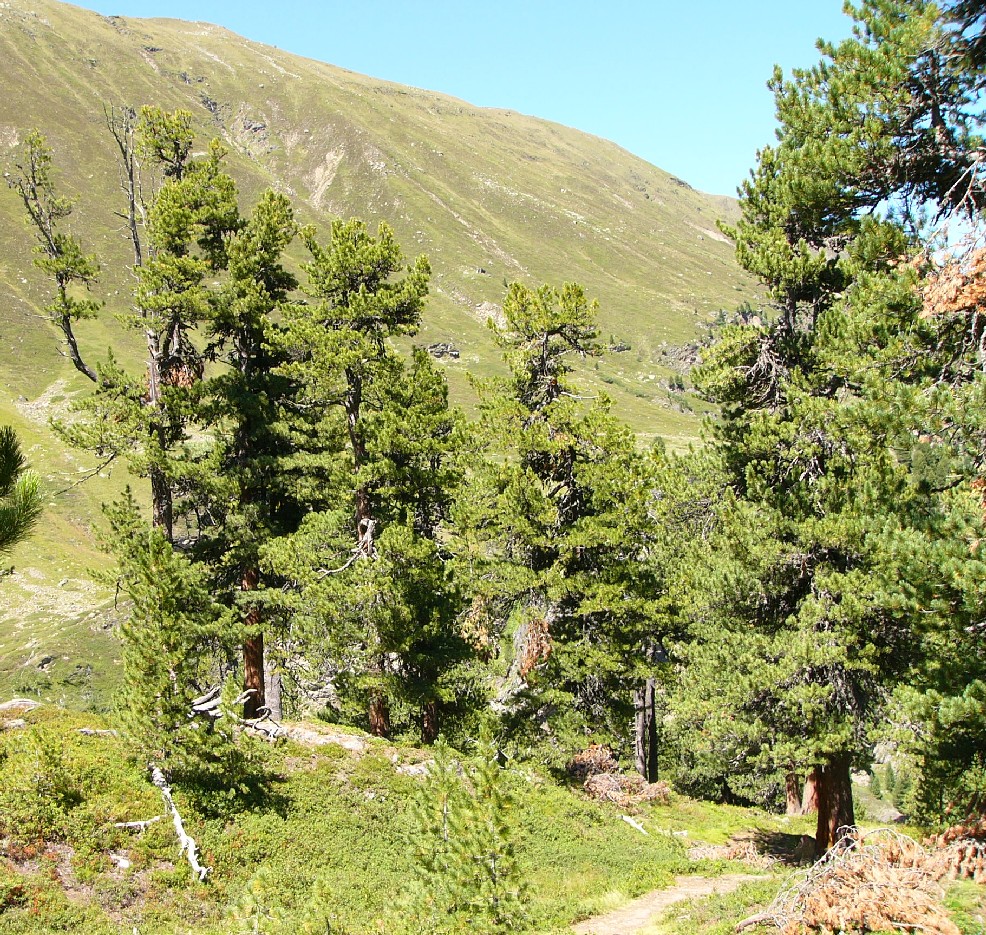 In den Bergen in bizarren Formen, oft vergesellschaftet mit Lärchen
