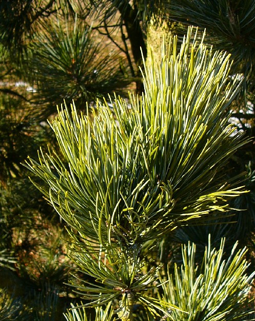 Pinus - Nadeln vorwiegend zu 5, junge Zapfen eiförmig