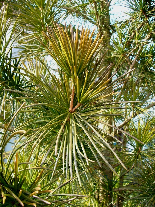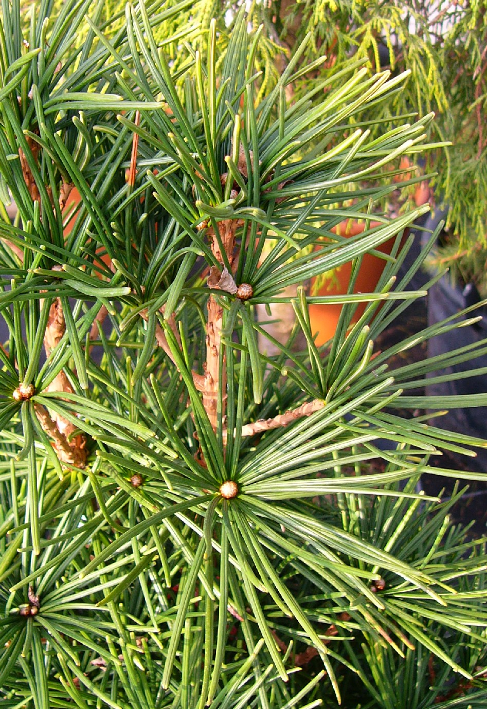 Blätter zu 20 - 40 schirmförmig ausgebreitet, am Ende von Kurz- oder Lnagtrieben,