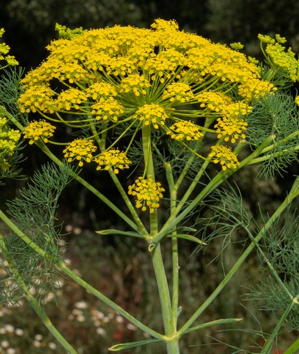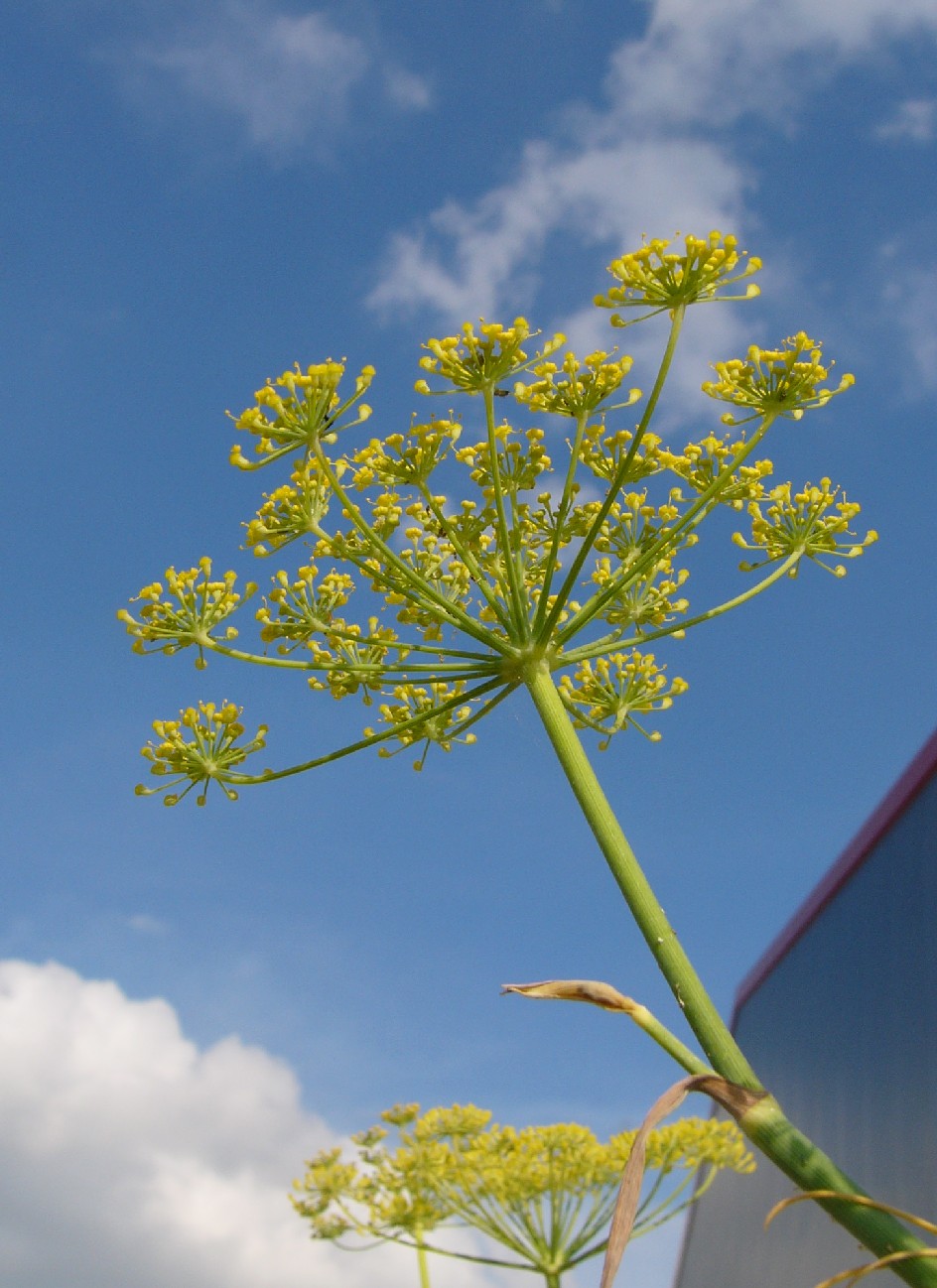 deutlich gerippt Dolden mit 15 - 20 Doldenstrahlen, Doldenstrahlen kräftig, verschieden lang > Foeniculum vulgare (Gewöhnlicher Fenchel)    |