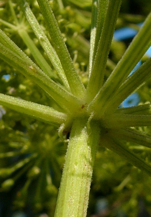 Stängel und Doldenstrahlen rau behaart