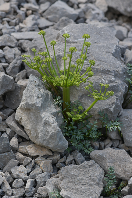 | Endemit der Pyrenäen Stängel kräftig, kurz, meist nur mit 1 Dolde, Doldenstrahlen sehr ungleich > Xatardia scabra