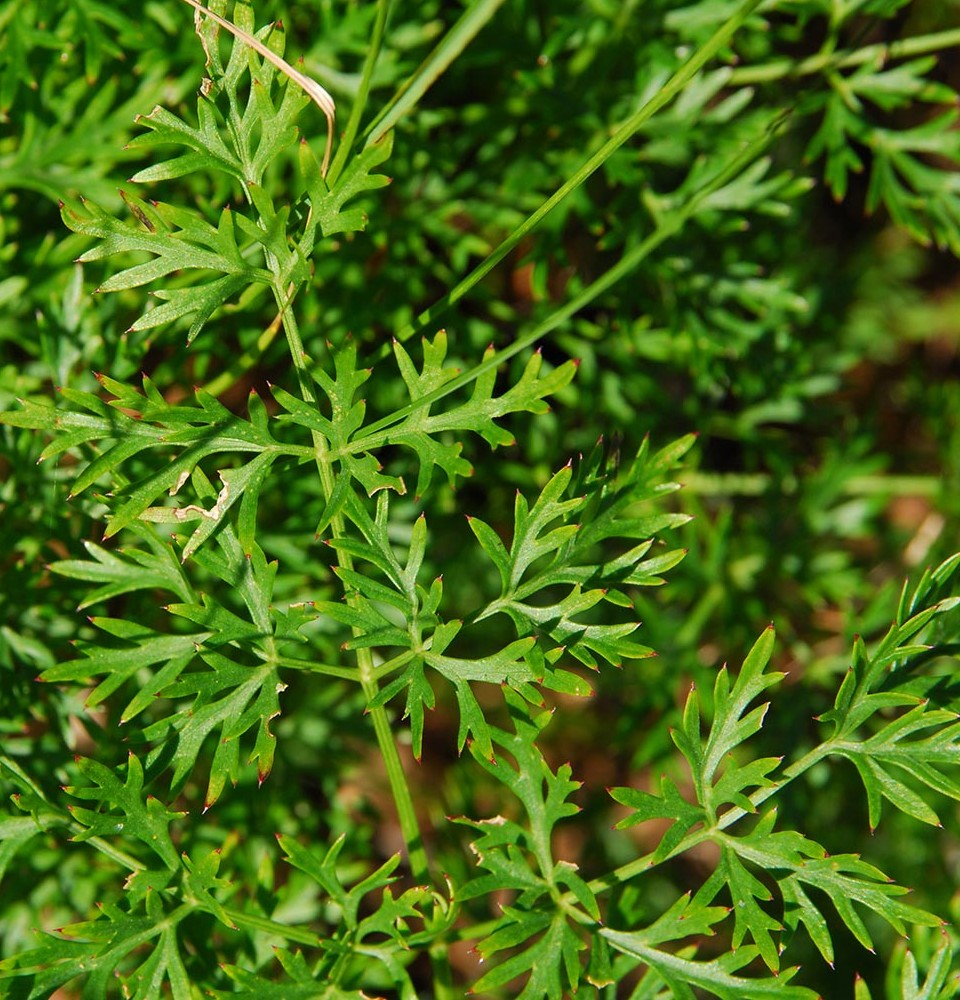 Blüten weiß, Blätter mehrfach gefiedert, mit kurzen, +/- breiten Fiederabschnitten,