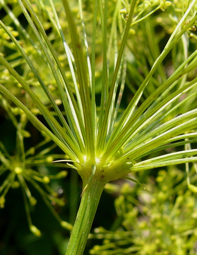 Apiaceae - Blüten hellgelb, Stängelblätter gefiedert, Blättchen fädlich, Früchte kahl