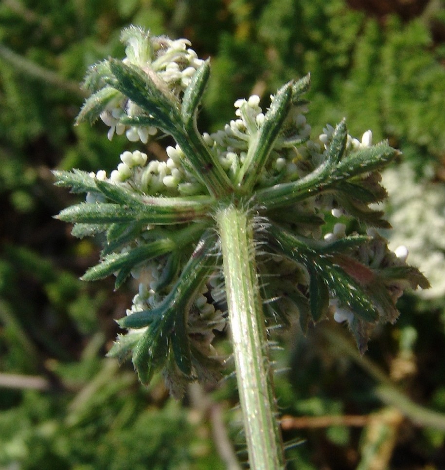 1 Dolde mit 3 - 4 Strahlen, Hüllblätter deutlich länger als die Dolde