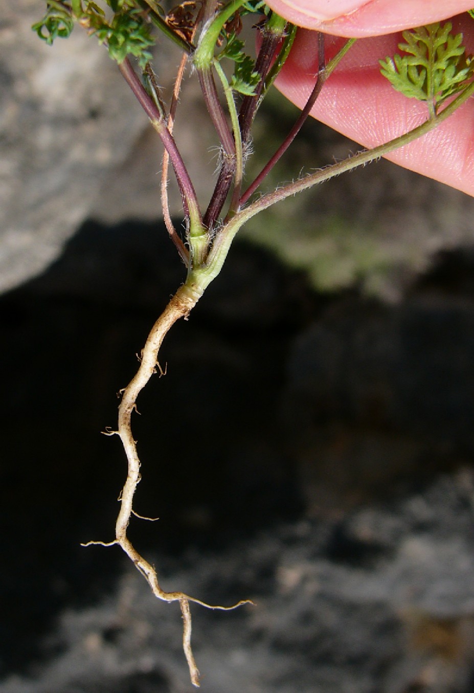 Stängel zerstreut abstehend behaart bis fast kahl, Wurzel dünn