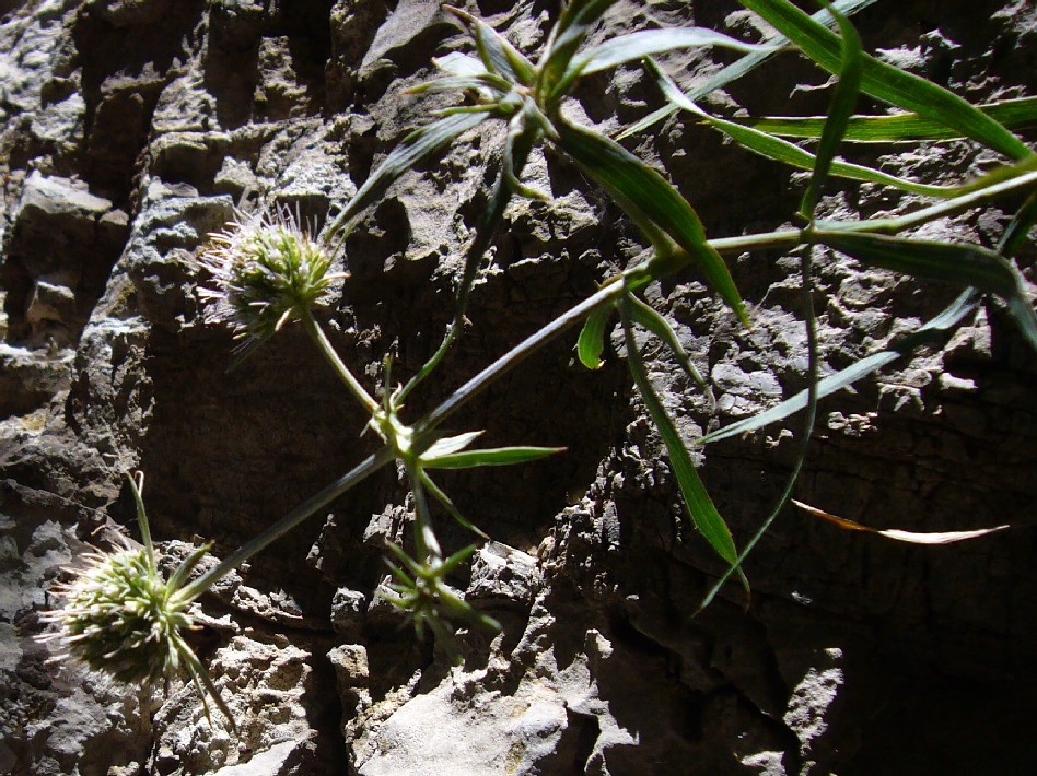 Eryngium- Blätter mit linealischen Fiederabschnitten