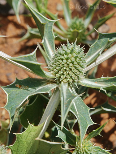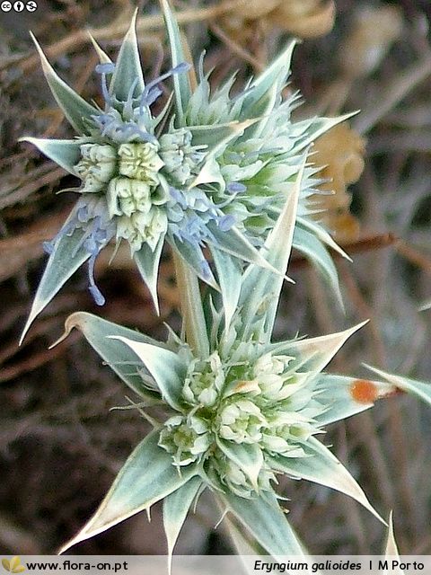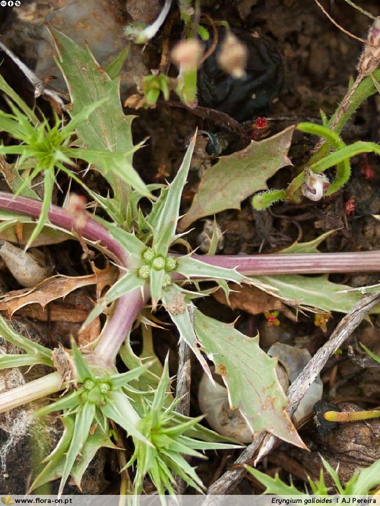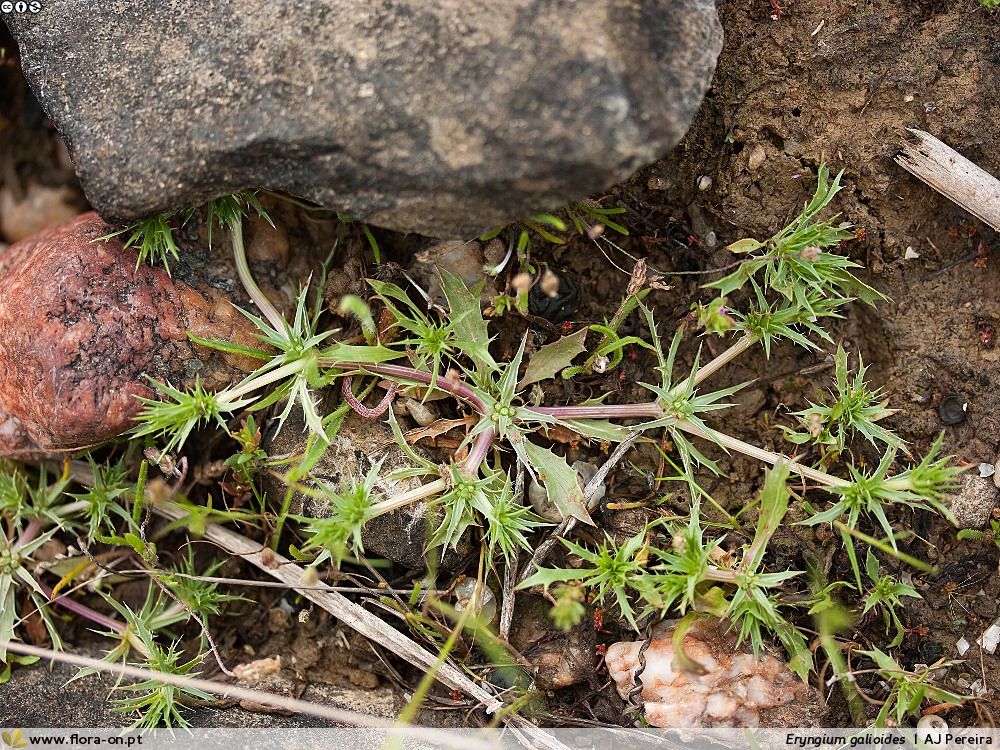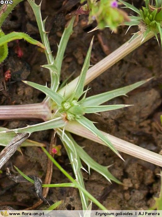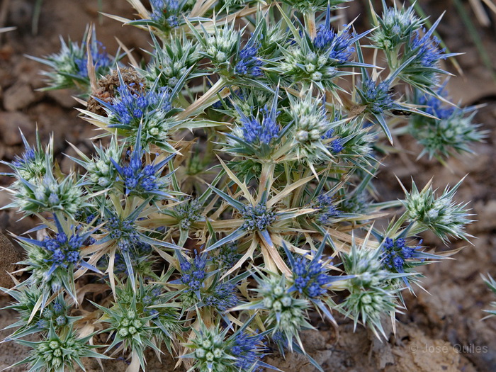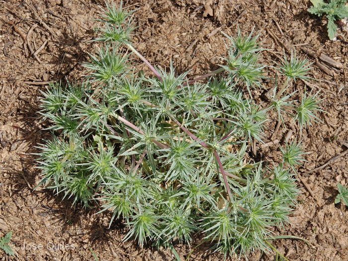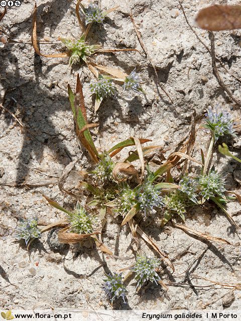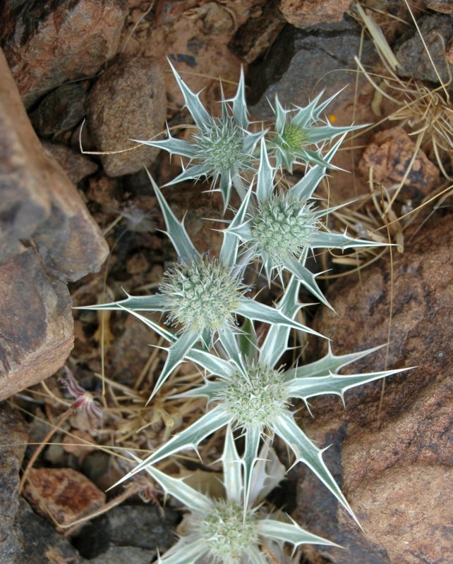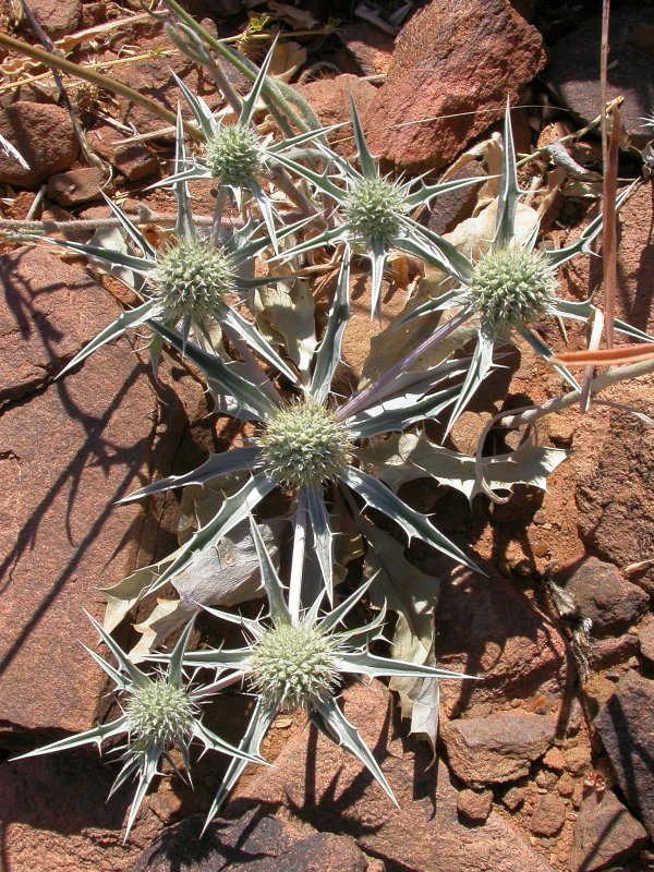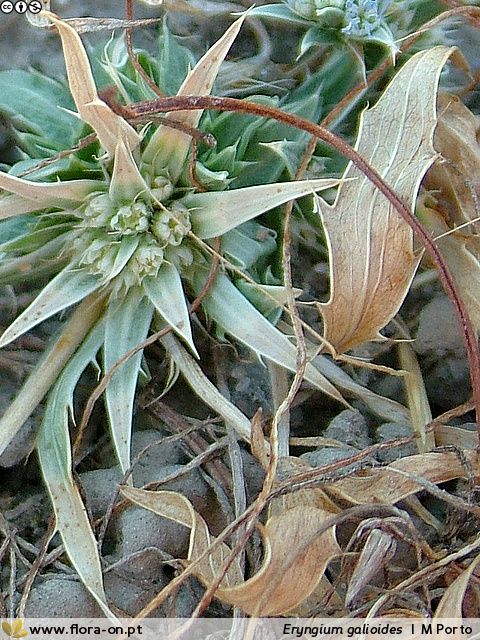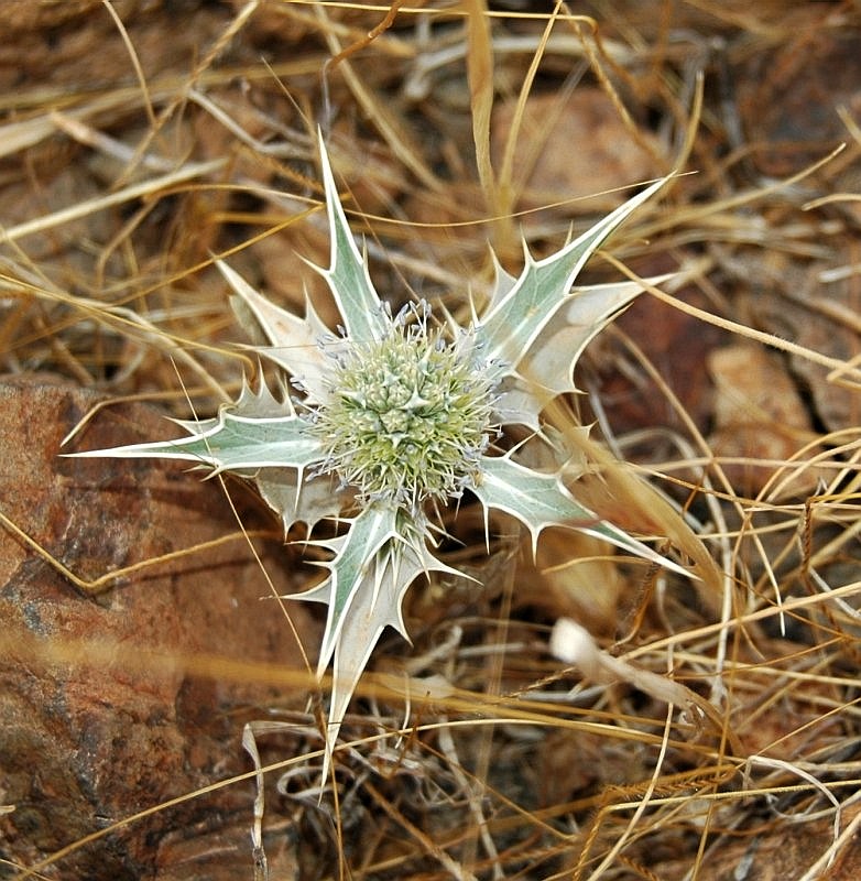 Eryngium- Pflanze niederliegend Blätter netznervig, Hüllblätter lanzettlich