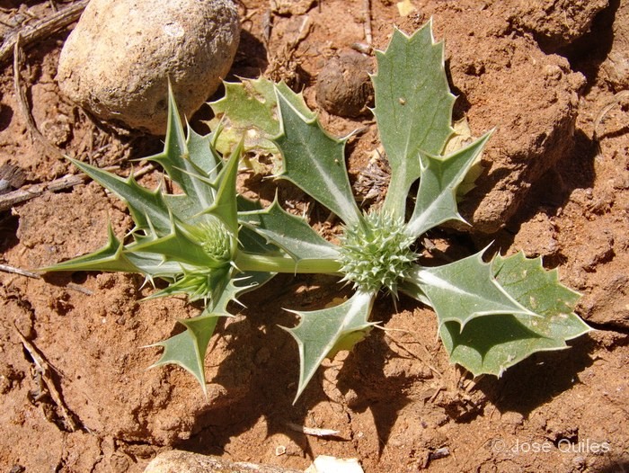 4 Grundblätter zu Blütezeit meist verwelkt, Köpfchen mit 4 - 6 Blüten, Hüllblätter und Blätter dornig