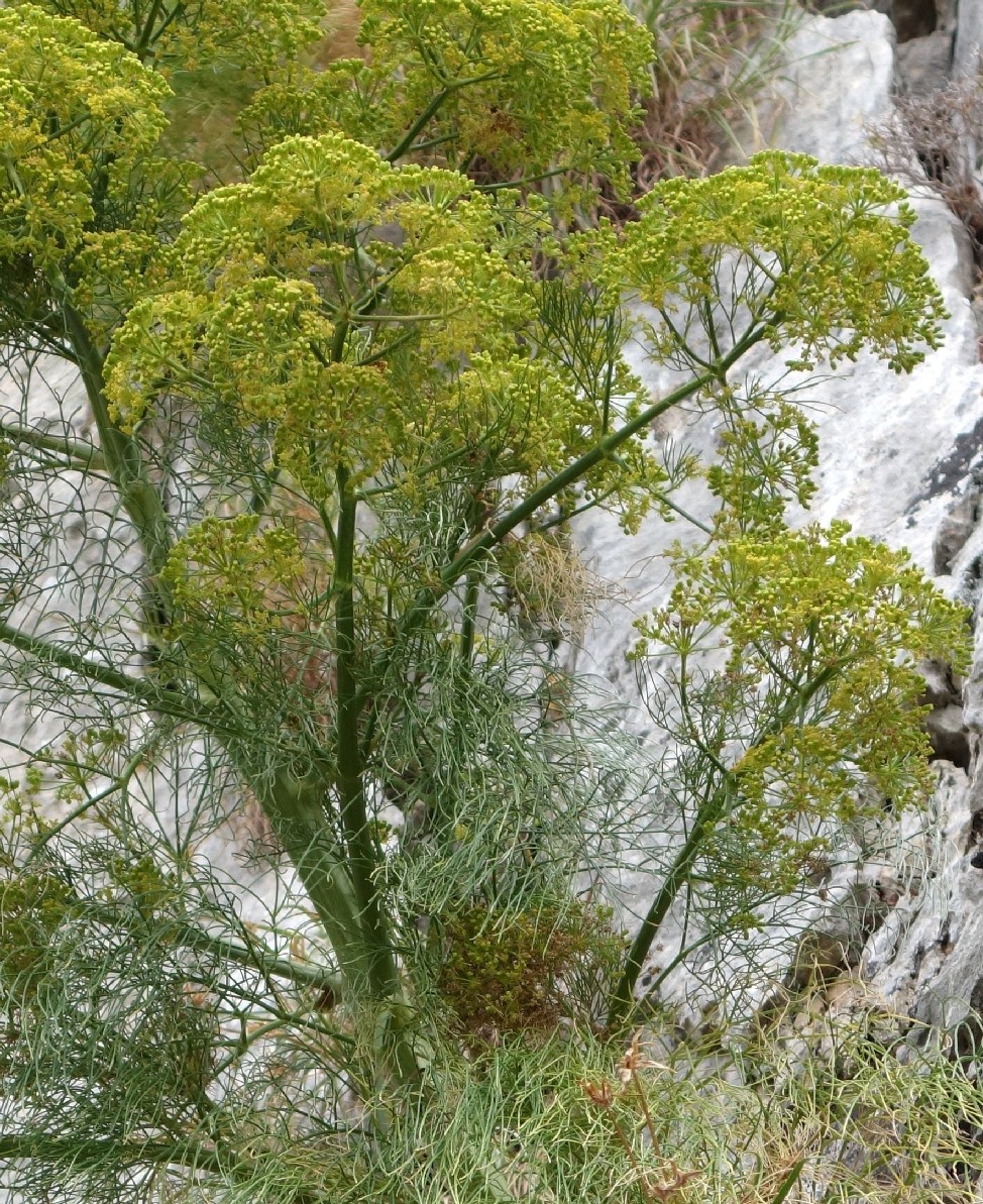 verdickt, Doldenstrahlen kahl, Fiederabschnitte der Blätter