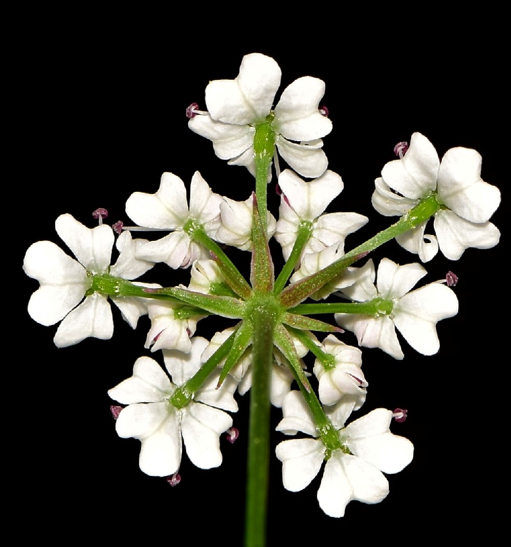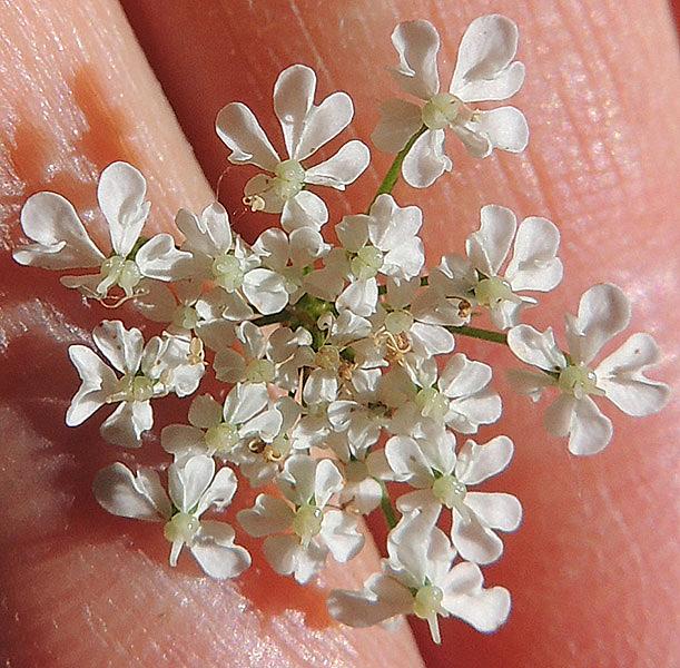 Döldchenstrahlen 2 - 6 mm lang, unterhalb der Blüte meist mit Zähnchen