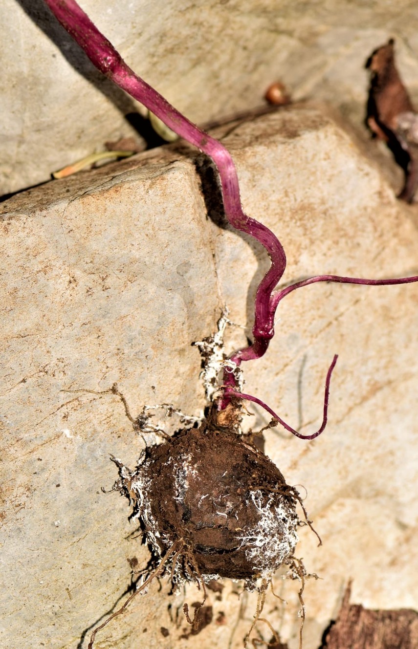 Stängels am Grund mit rundlicher Knolle, Knolle 5 - 10 mm im Durchmesser