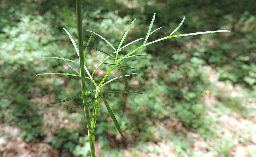 Grundblätter 2- 3-fach gefiedert, Fiederabschnitte linealisch, 0,5 - 1,5 mm breit