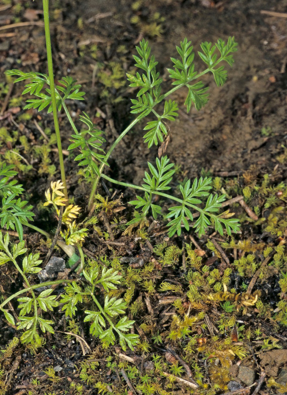 2 Fiederabschnitte der Blätter linealisch, 1 - 1,5 mm breit, spitz