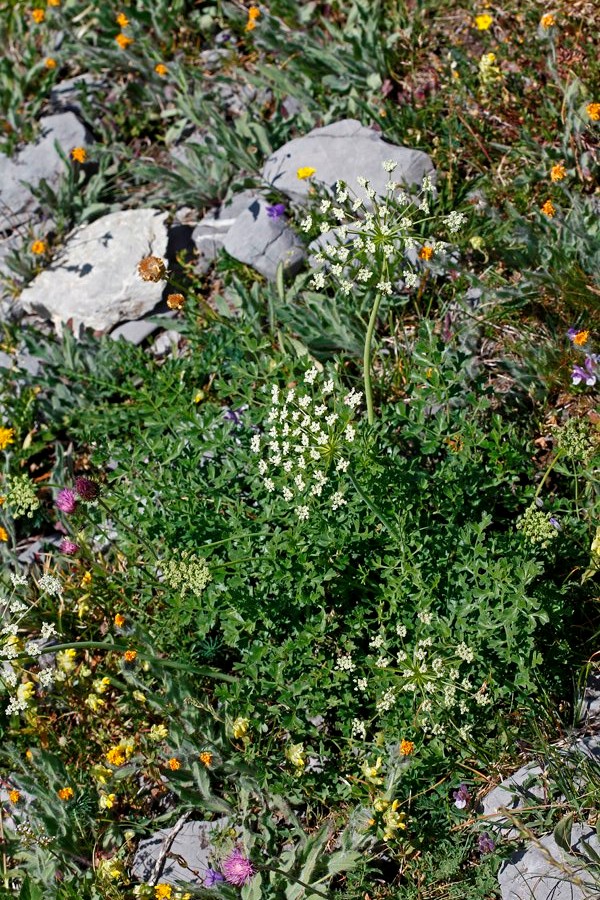 Laserpitium - Blüten weiß, Endzipfel der Blätter klein, 1 - 4- fach gefiedert