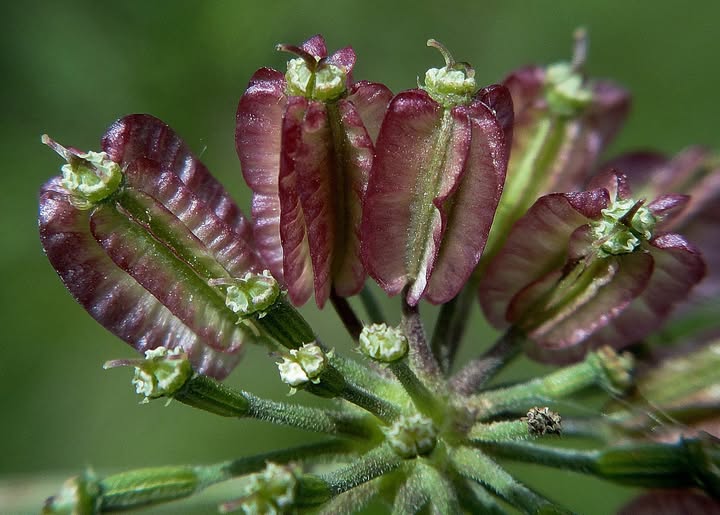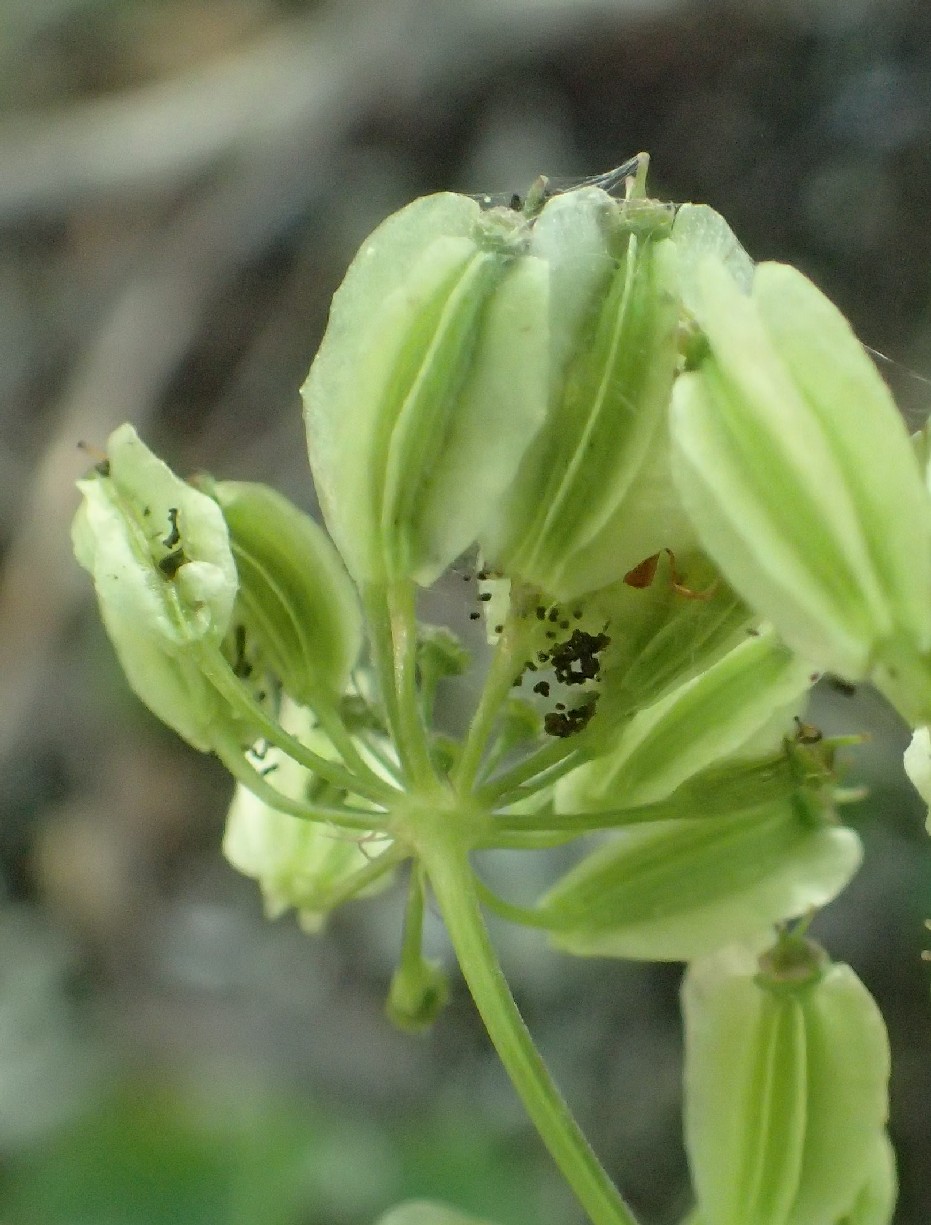 Stängel stark bereift, Doldenstrahlen glatt und kahl